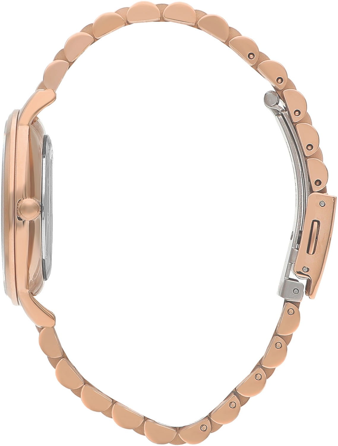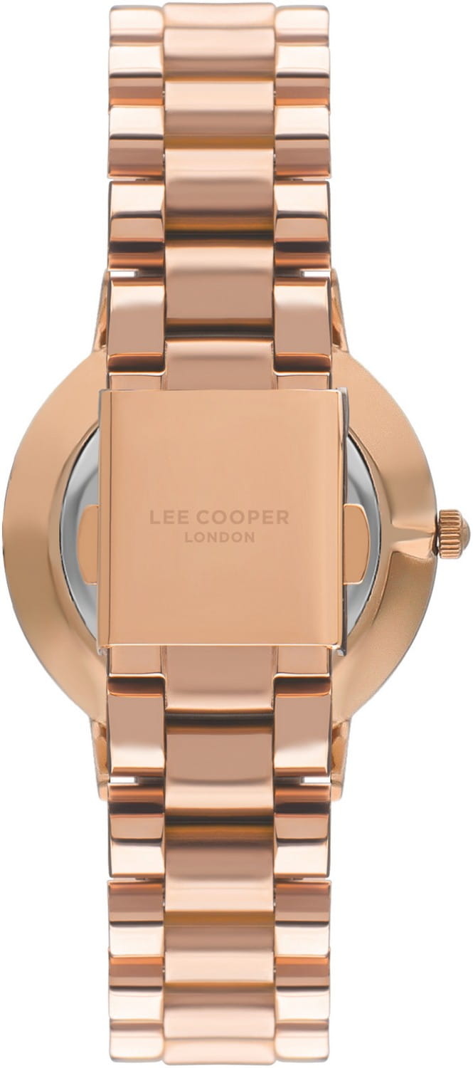 Женские часы Lee Cooper LC07548.430 — это стильное сочетание элегантности и современного дизайна. Круглый корпус диаметром 36 мм выполнен из суперметалла с IP-покрытиемIP-покрытиеМетод ионного напыления. Демонстрирует повышенную устойчивость к истиранию, окислению и химическим веществам. Под воздействием высокого давления и температуры около 1500°C молекулы металла надёжно соединяются с частицами корпуса часов. цвета розового золота, что придает модели особый блеск. Серебристый циферблат защищен минеральным стекломМинеральное стеклоМинеральное стекло представляет собой искусственно выращенный минерал кварца. Такое стекло отличается особой устойчивостью к повреждениям и царапинам. Уступает по некоторым качествам сапфировому стеклу., обеспечивающим устойчивость к царапинам и украшен цирконами в виде меток. Часы оснащены надежным кварцевым механизмом, а металлический браслет с IP-покрытиемIP-покрытиеМетод ионного напыления. Демонстрирует повышенную устойчивость к истиранию, окислению и химическим веществам. Под воздействием высокого давления и температуры около 1500°C молекулы металла надёжно соединяются с частицами корпуса часов. на раскладной застёжкеРаскладная застёжкаТакой тип застёжки используется только на браслетах из металла. Она никогда не раскрывается полностью, происходит разделение на 2 и более частей. Раскладывающая застёжка снизит вероятность потери часов к минимуму. гарантирует комфортную посадку на запястье. Водозащита 30 метров защищает модель от случайных брызг и дождя. Lee Cooper — отличный выбор для тех, кто ценит утонченность и качество.