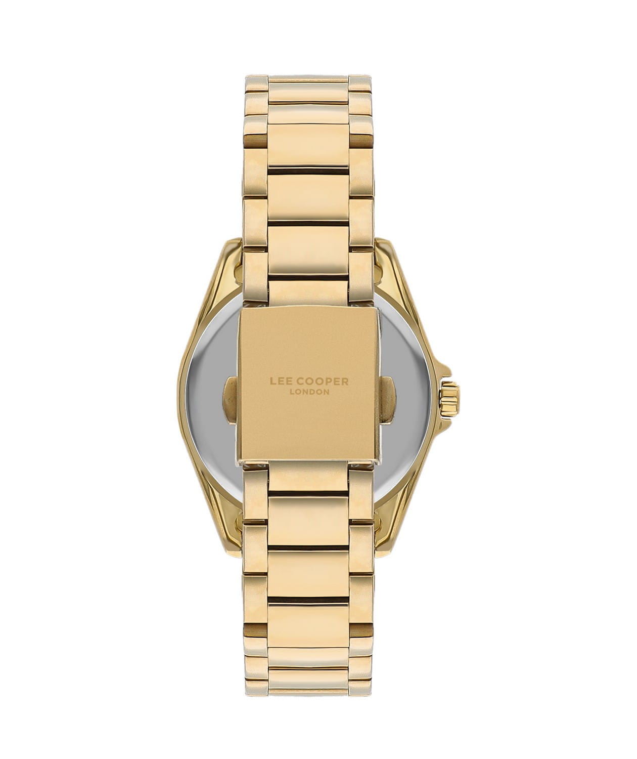 Женские часы Lee Cooper LC07873.120 выполнены в классическом стиле и сочетают строгий дизайн с надёжным механизмом. Модель оснащена кварцевым механизмом, обеспечивающим точность хода и минимальное обслуживание. Изящный корпус изготовлен из суперметалла с IP-покрытиемIP-покрытиеМетод ионного напыления. Демонстрирует повышенную устойчивость к истиранию, окислению и химическим веществам. Под воздействием высокого давления и температуры около 1500°C молекулы металла надёжно соединяются с частицами корпуса часов., гарантирует комфорт при ношении. Изысканный циферблат дополнен штрихами и римскими цифрами для чёткого отсчёта времени. Защиту циферблата обеспечивает минеральное стеклоМинеральное стеклоМинеральное стекло представляет собой искусственно выращенный минерал кварца. Такое стекло отличается особой устойчивостью к повреждениям и царапинам. Уступает по некоторым качествам сапфировому стеклу., устойчивое к мелким механическим повреждениям. Стальной браслет с IP-покрытиемIP-покрытиеМетод ионного напыления. Демонстрирует повышенную устойчивость к истиранию, окислению и химическим веществам. Под воздействием высокого давления и температуры около 1500°C молекулы металла надёжно соединяются с частицами корпуса часов. на раскладной застёжкеРаскладная застёжкаТакой тип застёжки используется только на браслетах из металла. Она никогда не раскрывается полностью, происходит разделение на 2 и более частей. Раскладывающая застёжка снизит вероятность потери часов к минимуму. гарантирует удобную посадку и надёжную фиксацию на запястье. Метки с люминесцентным покрытиемЛюминесцентное покрытиеПозволяет считывать показания времени в темноте. Производители наносят на стрелки, часовые индексы, безель или поверхность циферблата светонакопительный состав, дающий холодное свечение., обеспечивающим хорошую читаемость в темноте. Водозащита 30WR позволяет использовать часы в повседневных условиях без риска повреждения от случайных брызг воды. Это сочетание классического дизайна, прочности материалов и качества исполнения для уверенных в себе женщин.