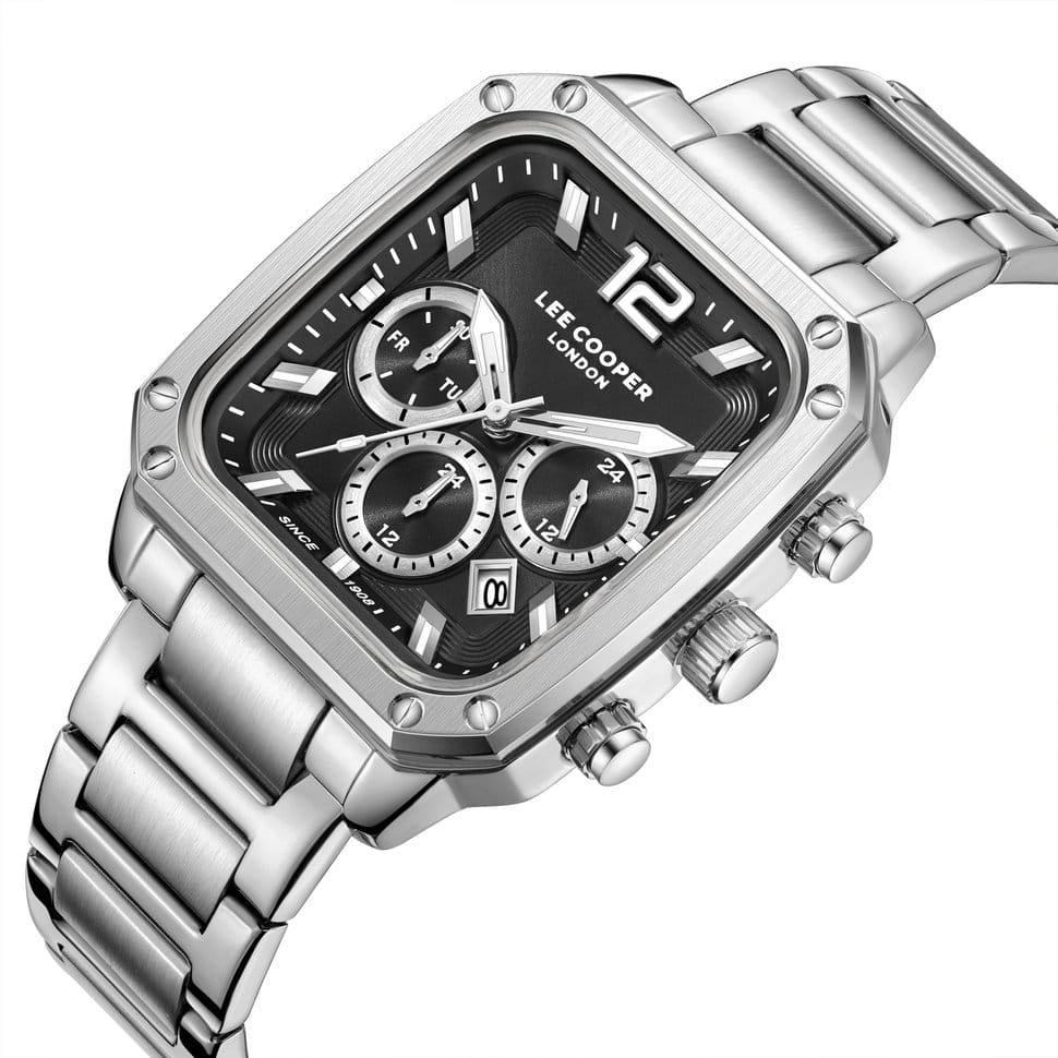 Мужские наручные часы Lee Cooper LC08182.350 оснащены кварцевым механизмом, обеспечивающий высокую точность хода и надежность. Элегантный корпус часов выполнен из суперметалла серебристого цвета, что делает их устойчивыми к внешним воздействиям и придает благородный вид. Циферблат украшен классическими стрелками и метками с люминесцентным покрытиемЛюминесцентное покрытиеПозволяет считывать показания времени в темноте. Производители наносят на стрелки, часовые индексы, безель или поверхность циферблата светонакопительный состав, дающий холодное свечение., гармонично дополняющим общий дизайн модели. Для защиты циферблата используется минеральное стеклоМинеральное стеклоМинеральное стекло представляет собой искусственно выращенный минерал кварца. Такое стекло отличается особой устойчивостью к повреждениям и царапинам. Уступает по некоторым качествам сапфировому стеклу., устойчивое к царапинам и механическим повреждениям. Корпус размером 39 мм x 49 мм, что делает часы заметными и подходящими. Стальной браслет на раскладной застёжкеРаскладная застёжкаТакой тип застёжки используется только на браслетах из металла. Она никогда не раскрывается полностью, происходит разделение на 2 и более частей. Раскладывающая застёжка снизит вероятность потери часов к минимуму. обеспечивает комфортное и безопасное ношение. Окошко даты находится в положении между 4 и 5 часов. Часы обладают водонепроницаемостью до 30 метров (3 АТМ), что позволяет использовать их в повседневной жизни, включая контакт с водой при мытье рук или дожде. Эти часы станут идеальным выбором для мужчин, ценящих стиль, качество и функциональность.