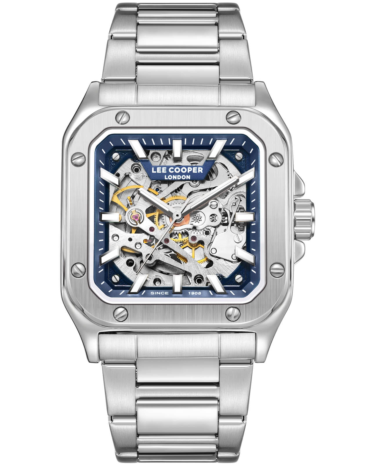 Мужские наручные часы-скелетоны Lee Cooper LC08198.390 механические с автоподзаводом, обеспечивающие высокую точность хода и надежность. Корпус часов выполнен из суперметалла серебристого цвета, размером 39 мм X 48 мм, что делает их устойчивыми к внешним воздействиям и придает благородный вид. Циферблат украшен классическими стрелками и метками с люминесцентным покрытиемЛюминесцентное покрытиеПозволяет считывать показания времени в темноте. Производители наносят на стрелки, часовые индексы, безель или поверхность циферблата светонакопительный состав, дающий холодное свечение., гармонично дополняющим общий дизайн модели. Для защиты циферблата используется минеральное стеклоМинеральное стеклоМинеральное стекло представляет собой искусственно выращенный минерал кварца. Такое стекло отличается особой устойчивостью к повреждениям и царапинам. Уступает по некоторым качествам сапфировому стеклу., устойчивое к царапинам и механическим повреждениям. Браслет из стали оснащен раскладной застёжкойРаскладная застёжкаТакой тип застёжки используется только на браслетах из металла. Она никогда не раскрывается полностью, происходит разделение на 2 и более частей. Раскладывающая застёжка снизит вероятность потери часов к минимуму., обеспечивающим комфортное и безопасное ношение. Часы обладают водонепроницаемостью до 50 метров (5 АТМ), что позволяет использовать их в повседневной жизни, включая контакт с водой при мытье рук или дожде. Эти часы станут идеальным выбором для мужчин, ценящих стиль, качество и функциональность.