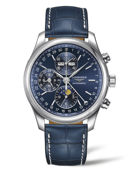 Мужские швейцарские механические часы Longines Master Collection L2.773.4.92.0 – стильный хронографХронографФункция позволяет измерять отрезки времени с особой точностью: часы, минуты, секунды. Верным признаком хронографа является наличие на циферблате 3 дополнительных окошек-счётчиков. для делового мужчины.