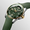 Мужские механические швейцарские часы с автоподзаводом Longines HydroConquest L3.781.3.06.9. Сапфировое стеклоСапфировое стеклоПрочный и надёжный материал из кристалла сапфира синтетического происхождения, характеризующийся особой твёрдостью и устойчивостью к царапинам и повреждениям. с антибликовым покрытием, устойчивое к мелким механическим повреждениям. Корпус часов изготовлен из нержавеющей стали. Вращающийся стальной безельБезельВнешний ободок, закрепляющий стекло. В спортивных часах так называется поворотное кольцо с делениями на циферблате, выполняет роль таймера – замеряет отрезки времени на шкале. Неподвижный безель – элемент декора. Однонаправленно вращающийся безель на дайверских часах позволяет фиксировать моменты погружения и выныривания на поверхность. с люминесцентным покрытиемЛюминесцентное покрытиеПозволяет считывать показания времени в темноте. Производители наносят на стрелки, часовые индексы, безель или поверхность циферблата светонакопительный состав, дающий холодное свечение. Superluminova из нержавеющей стали с PVD-покрытиемPVDУльтратонкое покрытие наносится в технике вакуумного напыления, сочетает в себе нитрид титана особой прочности со слоем золота или оксида хрома. Несёт в себе декоративную или защитную функцию. и керамики, защищенный от царапин, никогда не изнашивается и не выцветает. Стрелки и метки с люминесцентным покрытиемЛюминесцентное покрытиеПозволяет считывать показания времени в темноте. Производители наносят на стрелки, часовые индексы, безель или поверхность циферблата светонакопительный состав, дающий холодное свечение.. Окошко даты находится в положении 3 часа. Класс водозащиты: 300 метров, позволит плавать, нырять и заниматься другими водными видами спорта. Каучуковый ремешок на раскладной застёжкеРаскладная застёжкаТакой тип застёжки используется только на браслетах из металла. Она никогда не раскрывается полностью, происходит разделение на 2 и более частей. Раскладывающая застёжка снизит вероятность потери часов к минимуму. с удлинением для дайверов.