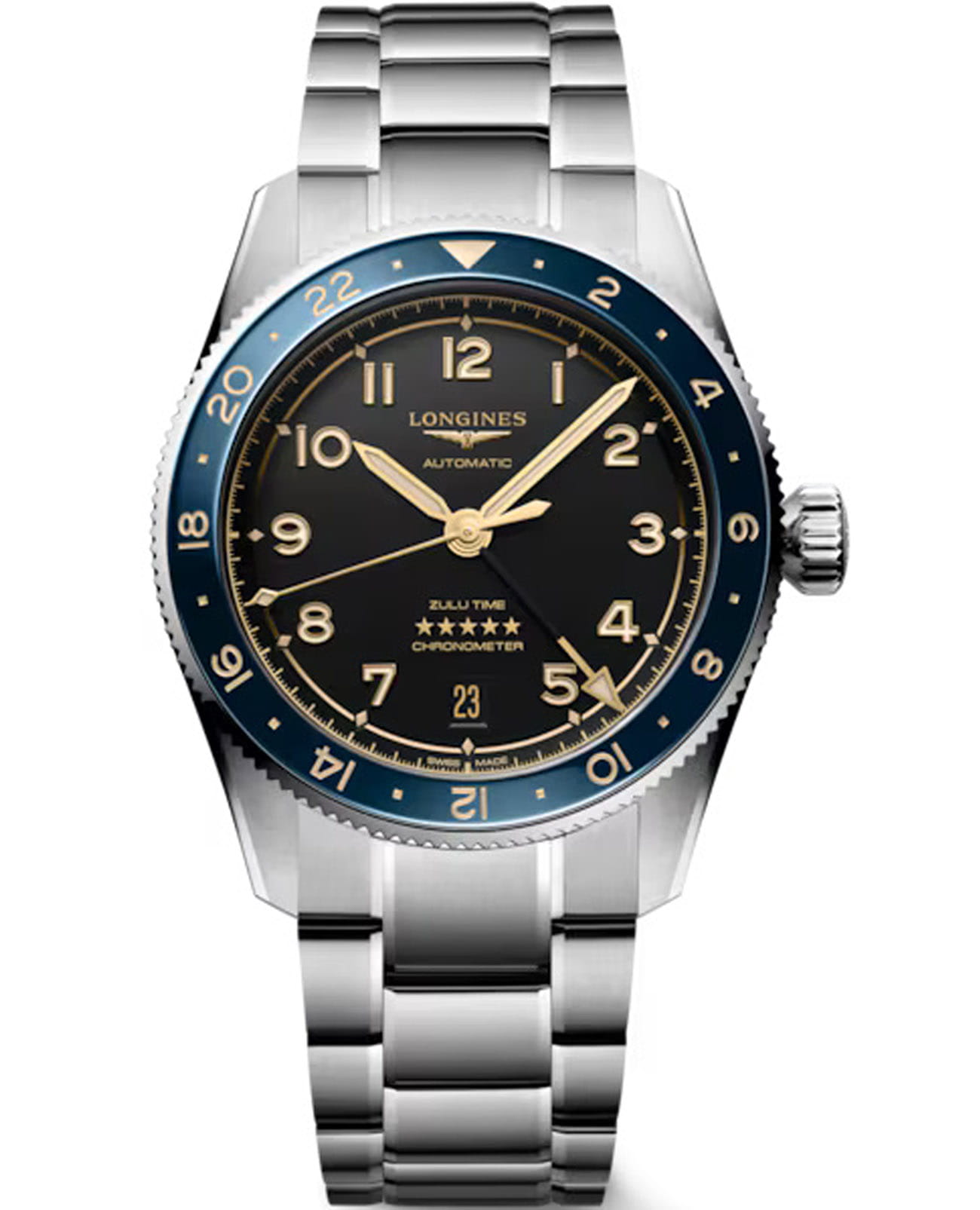 Швейцарские механические часы LONGINES SPIRIT ZULU TIME L3.802.4.60.6 - воплощает в себе вековой опыт бренда в производстве часов с несколькими часовыми поясами. Своим происхождением и названием она обязана первым наручным часам LONGINES с двумя часовыми поясами, выпущенным в 1925 году, на циферблате которых был изображен флаг Зулуленда. Сапфировое стеклоСапфировое стеклоПрочный и надёжный материал из кристалла сапфира синтетического происхождения, характеризующийся особой твёрдостью и устойчивостью к царапинам и повреждениям. c антибликовым покрытиемАнтибликовое покрытиеСлой оксида металла в 0,13-0,3 микрон, благодаря которому стекло часов не бликует и не отражает свет. Антибликовое покрытие уменьшает отражение света в 10 раз, обеспечивая отличную читаемость показателей циферблата. с обеих сторон, устойчивое к появлению царапин, обладающее высокой прозрачностью. Корпус часов изготовлен из нержавеющей стали, диаметром 39 мм. Вращающийся в двух направлениях безельБезельВнешний ободок, закрепляющий стекло. В спортивных часах так называется поворотное кольцо с делениями на циферблате, выполняет роль таймера – замеряет отрезки времени на шкале. Неподвижный безель – элемент декора. Однонаправленно вращающийся безель на дайверских часах позволяет фиксировать моменты погружения и выныривания на поверхность. из стали и керамики, защищает от царапин, никогда не изнашивается и не выцветает. Стрелки и метки с люминесцентным покрытиемЛюминесцентное покрытиеПозволяет считывать показания времени в темноте. Производители наносят на стрелки, часовые индексы, безель или поверхность циферблата светонакопительный состав, дающий холодное свечение. Super-LumiNova® обеспечивает отличную видимость в темноте. Класс водозащиты: 100 метров позволит плавать, нырять и заниматься другими водными видами спорт. Стальной браслет на раскладной застёжкеРаскладная застёжкаТакой тип застёжки используется только на браслетах из металла. Она никогда не раскрывается полностью, происходит разделение на 2 и более частей. Раскладывающая застёжка снизит вероятность потери часов к минимуму. обеспечивает комфортное ношение. Каждая модель оснащена эксклюзивным калибром LONGINES с кремниевой пружиной баланса, устойчивым к воздействию магнитных полей и сертифицированным COSCСертификат COSCОфициальный сертификат, подтверждающий то, что часы ходят с особо высокой точностью. Для получения документа часы подвергаются тестовым испытаниям, разработанным швейцарским институтом тестирования хронометров COSC. Допустимая норма для механических часов -4/+6 секунд в день, для кварцевых моделей +/- 0,07 секунд в день. как хронометр.