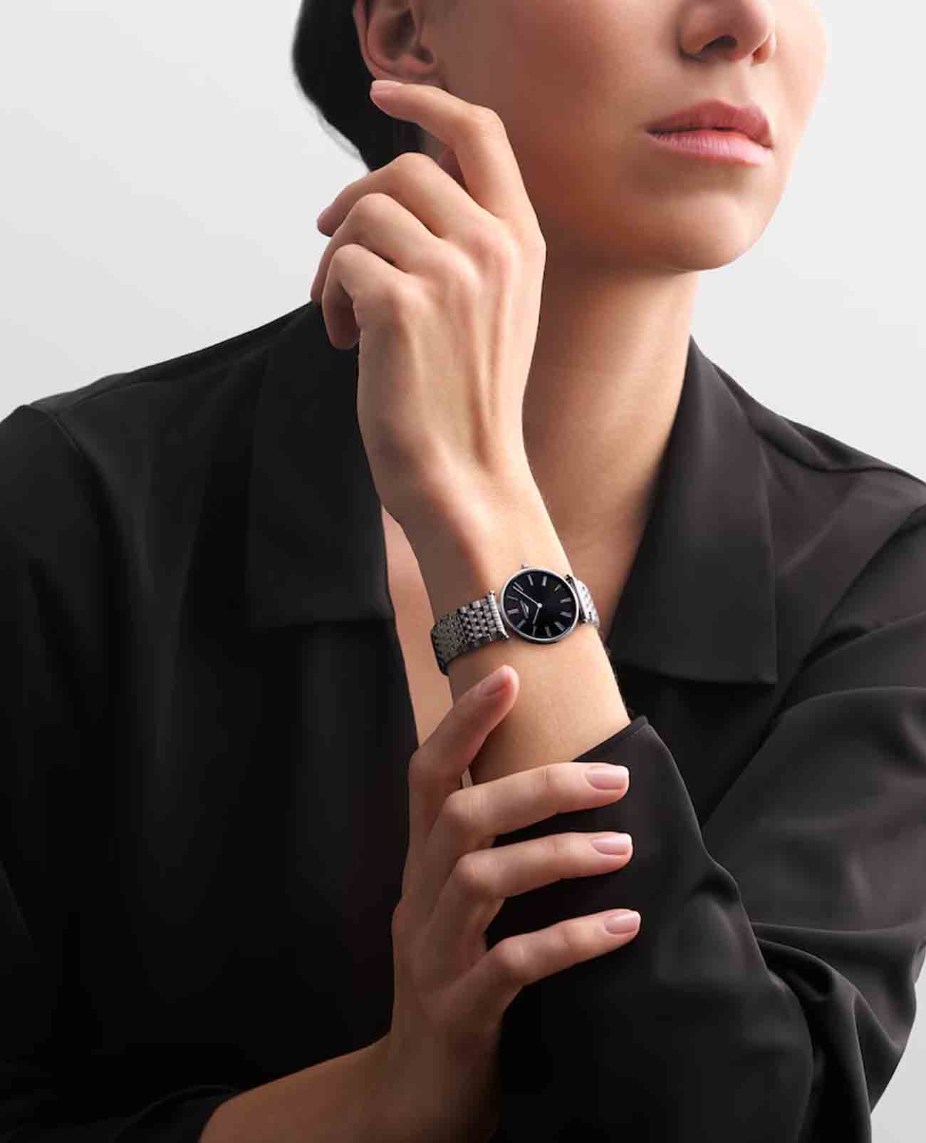 Женские швейцарские часы Longines La Grande Classique L4.512.4.51.6 — это воплощение элегантности и утонченности, идеально подходящее для делового образа. Их компактный чёрный циферблат, украшенный винтажными римскими цифрами, притягивает взгляды и добавляет нотку ретро-шика. Браслет из стали на застёжке «бабочка» с кнопкамиЗастёжка "бабочка"Такой вид застёжки дополняется предохранителями, помогающими избежать случайного раскрытия браслета. Обладают изящным исполнением. , выполненный с необычным плетением, не только функционален, но и эстетически привлекателен, придавая часам особый шарм.
