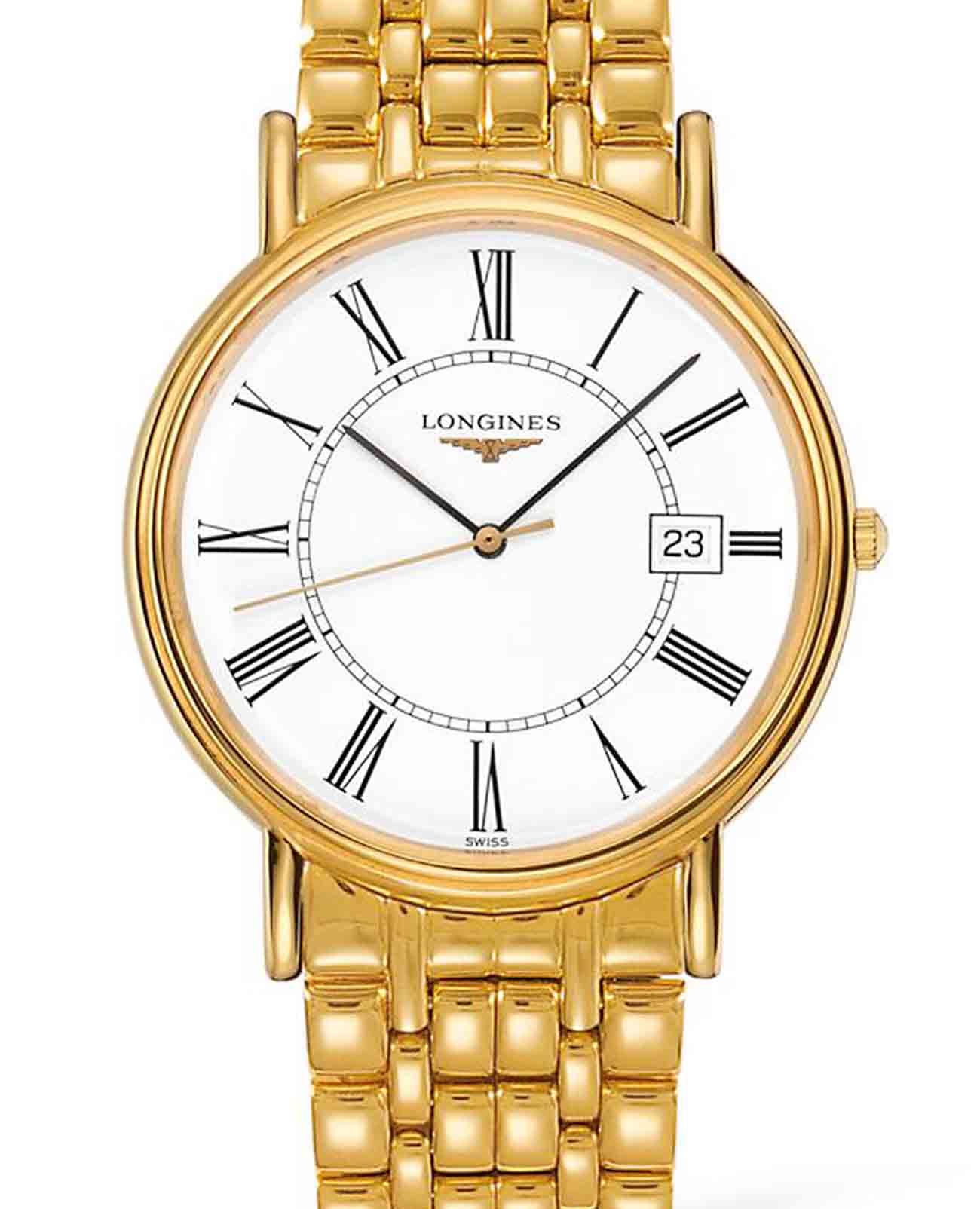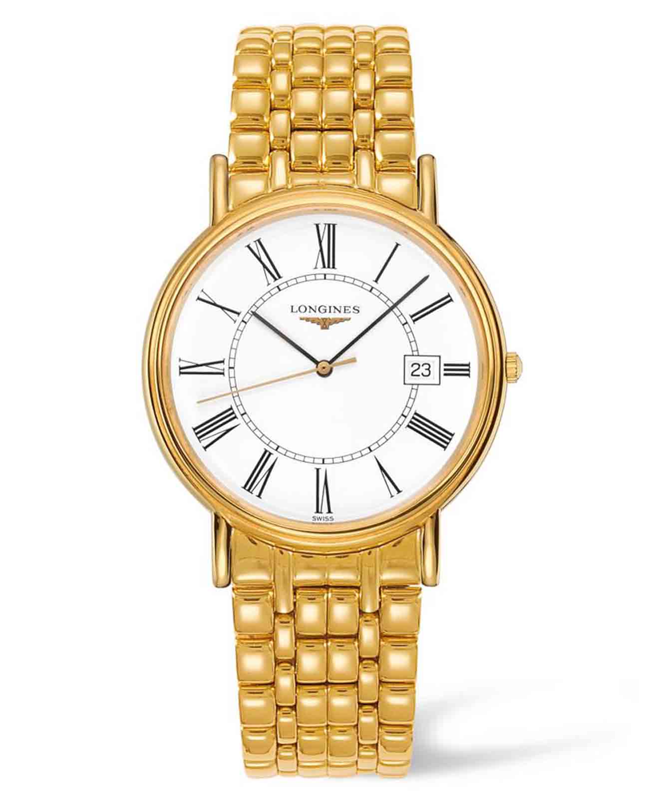 Мужские швейцарские часы Longines Presence L4.790.2.11.8, кварцевый механизм с высокой точностью. Сапфировое стеклоСапфировое стеклоПрочный и надёжный материал из кристалла сапфира синтетического происхождения, характеризующийся особой твёрдостью и устойчивостью к царапинам и повреждениям. устойчивое к появлению царапин, обладающее высокой прозрачностью. Корпус часов изготовлен из стали с PVD-покрытиемPVDУльтратонкое покрытие наносится в технике вакуумного напыления, сочетает в себе нитрид титана особой прочности со слоем золота или оксида хрома. Несёт в себе декоративную или защитную функцию.. Класс водозащиты: 30 метров, позволит защитить корпус от случайных брызг или капель дождя. Циферблат украшают нарисованные римские цифры. Окошко даты находится в положении 3 часа. Стальной браслет с PVD-покрытиемPVDУльтратонкое покрытие наносится в технике вакуумного напыления, сочетает в себе нитрид титана особой прочности со слоем золота или оксида хрома. Несёт в себе декоративную или защитную функцию. на застёжке-бабочке с кнопкамиЗастёжка "бабочка"Такой вид застёжки дополняется предохранителями, помогающими избежать случайного раскрытия браслета. Обладают изящным исполнением. .