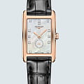 Изящная модель с белым перламутровым циферблатом и корпусом из 18 каратного розового золота инкрустирована 13 бриллиантами весом 0.059 карата. Ремешок выполнен из кожи аллигатора. Швейцарский кварцевый калибр L178 обеспечивает высокую точность хода. Сапфировое стекло устойчиво к царапинам. Наручные часы оснащены индикатором EOLEOLПредставляет собой систему, уведомляющую владельца часов о необходимости замены элемента питания. За 2 недели до полного разряда батарейки секундная стрелка перестаёт ходить чётко и начинает перепрыгивать на 3-4 деления..