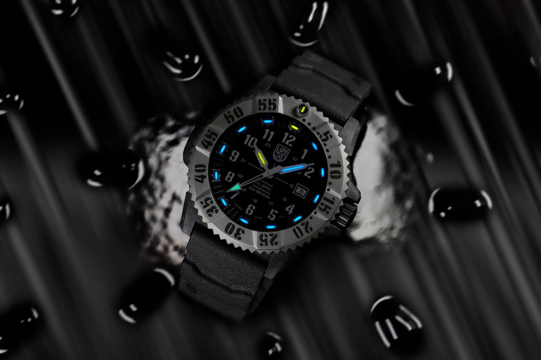 Luminox MIL-SPEC XL.3351.1.SET — мужская модель с мощным и функциональным дизайном, ориентированным на экстремальные условия. Корпус диаметром 46 мм выполнен из лёгкого и прочного карбона CARBONOX™+, а массивный односторонний вращающийся безельБезельВнешний ободок, закрепляющий стекло. В спортивных часах так называется поворотное кольцо с делениями на циферблате, выполняет роль таймера – замеряет отрезки времени на шкале. Неподвижный безель – элемент декора. Однонаправленно вращающийся безель на дайверских часах позволяет фиксировать моменты погружения и выныривания на поверхность. изготовлен из титана и дополнен крупной минутной разметкой для удобства под водой. Защитную функцию выполняет сапфировое стеклоСапфировое стеклоПрочный и надёжный материал из кристалла сапфира синтетического происхождения, характеризующийся особой твёрдостью и устойчивостью к царапинам и повреждениям. с антибликовым покрытиемАнтибликовое покрытиеСлой оксида металла в 0,13-0,3 микрон, благодаря которому стекло часов не бликует и не отражает свет. Антибликовое покрытие уменьшает отражение света в 10 раз, обеспечивая отличную читаемость показателей циферблата., обеспечивающим читаемость в любых условиях. В основе лежит швейцарский кварцевый механизм ETA F06.412 с индикацией часов, минут, секунд, даты и центральной секундной стрелкой. Водозащита 300 м (30 бар) соответствует профессиональным стандартам дайвинга. Благодаря технологии LLTLLTLLT — это автономный механизм подсветки, основанный на использовании микроскопических газонаполненных элементов. Специальные герметичные капсулы из боросиликатного стекла, интегрированные в циферблат, генерируют свечение без необходимости подключения к внешним источникам энергии. Для их работы не требуется ни дополнительный свет, ни механическое воздействие (например, нажатие кнопки). Свечение возникает благодаря химическому процессу: реакция между тритием, заключенным в капсулах, и люминофорным покрытием создает стабильное автономное освещение. Технология обеспечивает энергетическую независимость и долговечность подсветки.-подсветки, эти часы гарантируют превосходную видимость в темноте на протяжении 25 лет. Комплект MIL-SPEC поставляется на чёрном каучуковом ремешке с фирменной пряжкой CARBONOX™, дополнительным камуфляжным ремешком и инструментом для замены ремешка. Механизм с функцией HeavyDrive создает противоимпульс при ударе, чтобы предотвратить проскальзывание стрелок, что делает его более устойчивым к дисбалансу. Механизм с функцией PreciDrive, использующий термокомпенсационный блок, подает импульсы в зависимости от изменений температуры окружающей среды и воды.
