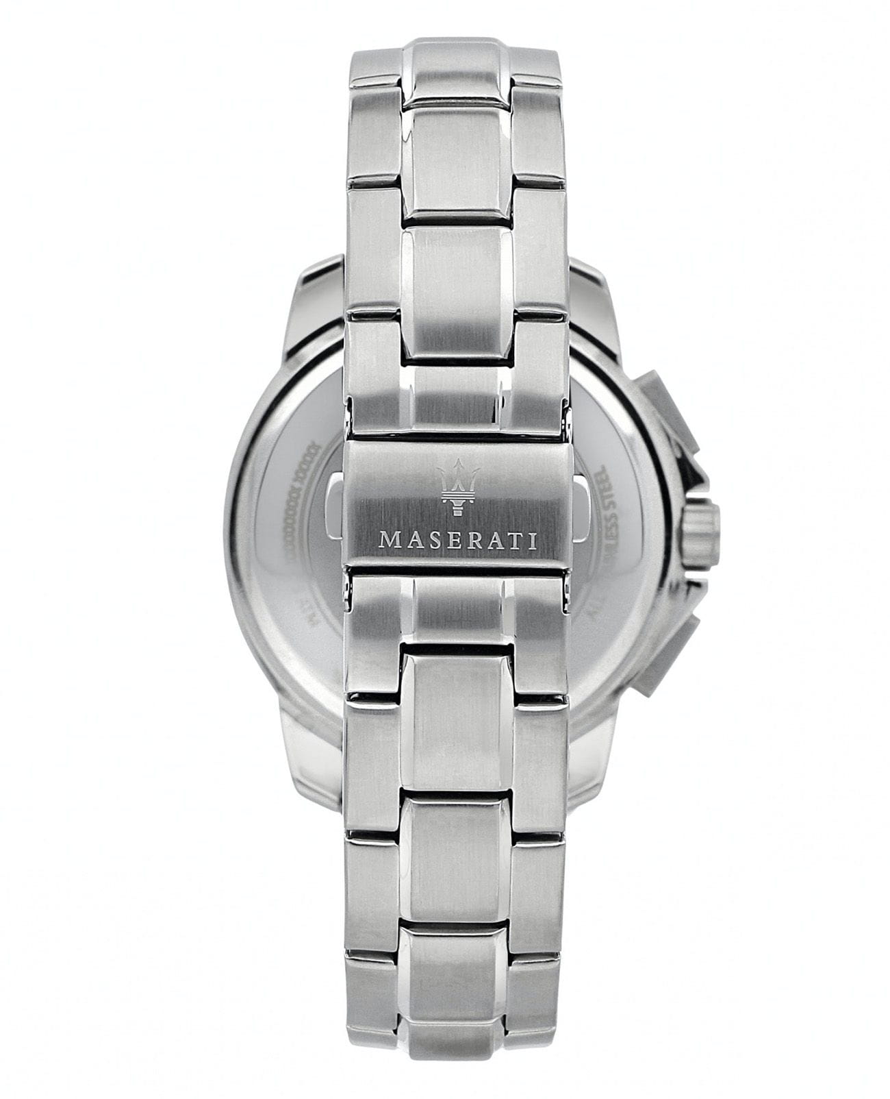 Мужские часы с хронографом Maserati POTENZA R8873645003, кварцевый механизм с высокой точностью. Класс водозащиты: 50 метров, позволит защитить корпус от случайных брызг или капель дождя. Корпус часов изготовлен из стали, серебристого цвета.