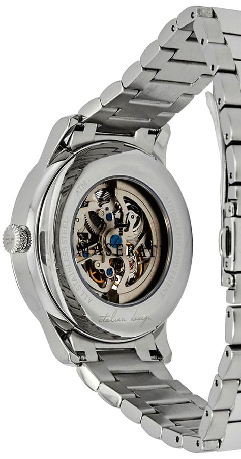 Механические мужские наручные часы Maserati Tradizione R8823125001, механический механизм (автоматический калибр) с высокой точностью. Класс водозащиты: 50 метров, позволит защитить корпус от случайных брызг или капель дождя. Корпус часов изготовлен из стали, серебристого цвета.