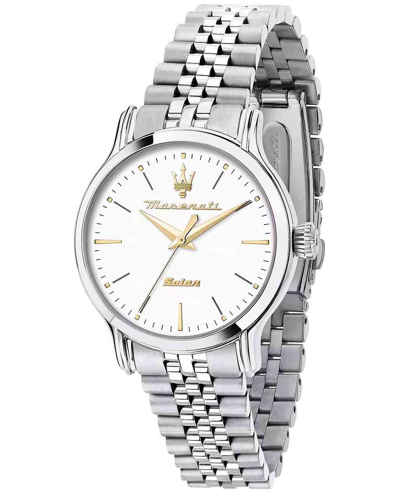 Maserati Attrazione Epoca R8853118519 — воплощение стиля и функциональности для современных женщин, ценящих качество и элегантность. Корпус диаметром 34 мм выполнен из нержавеющей стали, обеспечивая прочность и долговечность.Минеральное стеклоМинеральное стеклоМинеральное стекло представляет собой искусственно выращенный минерал кварца. Такое стекло отличается особой устойчивостью к повреждениям и царапинам. Уступает по некоторым качествам сапфировому стеклу. надежно защищает циферблат. Благодаря водостойкости до 10 метров (100 АТМ), эти часы станут вашим надежным спутником в любых условиях, будь то деловая встреча или активный отдых. Завершающий штрих — стальной браслет на раскладной застёжкеРаскладная застёжкаТакой тип застёжки используется только на браслетах из металла. Она никогда не раскрывается полностью, происходит разделение на 2 и более частей. Раскладывающая застёжка снизит вероятность потери часов к минимуму., который подчеркивает общий стиль, обеспечивая комфорт и надежность в носке. Циферблат с метками в виде штрихов украшен фирменным логотипом «Maserati». Завинчивающаяся задняя крышка и заводная головка.