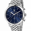 Мужские итальянские часы-хронографХронографФункция позволяет измерять отрезки времени с особой точностью: часы, минуты, секунды. Верным признаком хронографа является наличие на циферблате 3 дополнительных окошек-счётчиков. Maserati Epoca R8873618024, кварцевый механизм с высокой точностью. Минеральное стеклоМинеральное стеклоМинеральное стекло представляет собой искусственно выращенный минерал кварца. Такое стекло отличается особой устойчивостью к повреждениям и царапинам. Уступает по некоторым качествам сапфировому стеклу. устойчивое к появлению царапин и износу. Класс водозащиты: 100 метров, позволит плавать, нырять и заниматься другими водными видами спорта. Корпус часов изготовлен из стали. Люминесцентная подсветкаЛюминесцентное покрытиеПозволяет считывать показания времени в темноте. Производители наносят на стрелки, часовые индексы, безель или поверхность циферблата светонакопительный состав, дающий холодное свечение. стрелок.