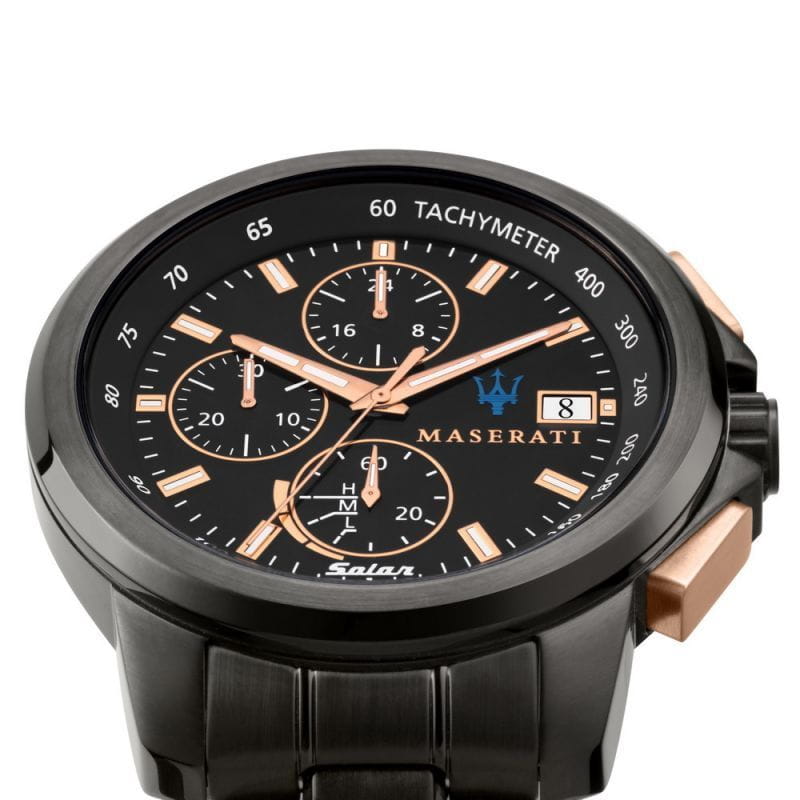 Мужские часы с хронографом Maserati POTENZA R8873645001, кварцевый механизм с высокой точностью. Класс водозащиты: 50 метров, позволит защитить корпус от случайных брызг или капель дождя. Корпус часов изготовлен из стали, черного цвета.