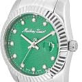 Женские кварцевые часы Mathey-Tissot Mathy D810AV — это стильное сочетание элегантности и современного дизайна. Изящный корпус выполнен из нержавеющей стали, диаметром 32 мм, что придаст образу женственности и романтизма. Изысканный циферблат с метками в виде точек украшены цирконами, что придает модели особый блеск. Циферблат защищен минеральным стекломМинеральное стеклоМинеральное стекло представляет собой искусственно выращенный минерал кварца. Такое стекло отличается особой устойчивостью к повреждениям и царапинам. Уступает по некоторым качествам сапфировому стеклу., обеспечивающий устойчивость к царапинам. Стрелки с люминесцентным покрытиемЛюминесцентное покрытиеПозволяет считывать показания времени в темноте. Производители наносят на стрелки, часовые индексы, безель или поверхность циферблата светонакопительный состав, дающий холодное свечение.. Окошко даты находится в положении 3 часа. Часы оснащены надежным кварцевым механизмом. Стальной браслет на раскладной застёжкеРаскладная застёжкаТакой тип застёжки используется только на браслетах из металла. Она никогда не раскрывается полностью, происходит разделение на 2 и более частей. Раскладывающая застёжка снизит вероятность потери часов к минимуму., гарантирует комфортное и безопасное ношение. Класс водозащиты: 50 метров позволит защитить корпус от случайных брызг или капель дождя. Mathey-Tissot  — отличный выбор для тех, кто ценит утонченность и качество.
