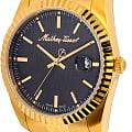 Мужские кварцевые часы Mathey-Tissot Rolly H810PN — это стильное сочетание элегантности и современного дизайна. Изящный корпус выполнен из нержавеющей стали с PVD-покрытиемPVDУльтратонкое покрытие наносится в технике вакуумного напыления, сочетает в себе нитрид титана особой прочности со слоем золота или оксида хрома. Несёт в себе декоративную или защитную функцию. золотистого цвета, диаметром 40 мм, что придаст образу элегантности и надежности. Изысканный циферблат с метками в виде штрихов придает модели особый блеск. Циферблат защищен минеральным стекломМинеральное стеклоМинеральное стекло представляет собой искусственно выращенный минерал кварца. Такое стекло отличается особой устойчивостью к повреждениям и царапинам. Уступает по некоторым качествам сапфировому стеклу., обеспечивающий устойчивость к царапинам. Стрелки и метки с люминесцентным покрытиемЛюминесцентное покрытиеПозволяет считывать показания времени в темноте. Производители наносят на стрелки, часовые индексы, безель или поверхность циферблата светонакопительный состав, дающий холодное свечение.. Окошко даты находится в положении 3 часа. Часы оснащены надежным кварцевым механизмом. Стальной браслет с PVD-покрытиемPVDУльтратонкое покрытие наносится в технике вакуумного напыления, сочетает в себе нитрид титана особой прочности со слоем золота или оксида хрома. Несёт в себе декоративную или защитную функцию. на раскладной застёжкеРаскладная застёжкаТакой тип застёжки используется только на браслетах из металла. Она никогда не раскрывается полностью, происходит разделение на 2 и более частей. Раскладывающая застёжка снизит вероятность потери часов к минимуму., гарантирует комфортное и безопасное ношение. Класс водозащиты: 50 метров позволит защитить корпус от случайных брызг или капель дождя. Mathey-Tissot  — отличный выбор для тех, кто ценит утонченность и качество.