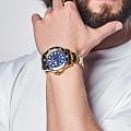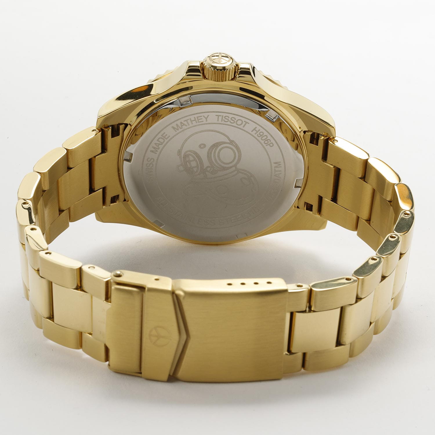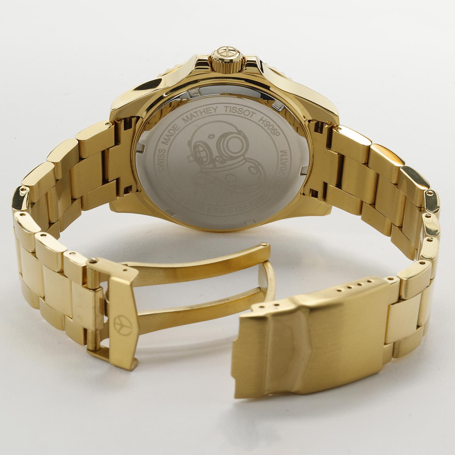 Мужские кварцевые часы Mathey-Tissot Mathy H906PBU — это стильное сочетание элегантности и современного дизайна. Изящный корпус выполнен из нержавеющей стали с PVD-покрытиемPVDУльтратонкое покрытие наносится в технике вакуумного напыления, сочетает в себе нитрид титана особой прочности со слоем золота или оксида хрома. Несёт в себе декоративную или защитную функцию. золотистого цвета, диаметром 43,5 мм, что придаст образу элегантности и надежности. Изысканный циферблат с метками в виде точек придает модели особый блеск. Циферблат защищен минеральным стекломМинеральное стеклоМинеральное стекло представляет собой искусственно выращенный минерал кварца. Такое стекло отличается особой устойчивостью к повреждениям и царапинам. Уступает по некоторым качествам сапфировому стеклу. с сапфировым покрытием, обеспечивает устойчивость к царапинам. БезельБезельВнешний ободок, закрепляющий стекло. В спортивных часах так называется поворотное кольцо с делениями на циферблате, выполняет роль таймера – замеряет отрезки времени на шкале. Неподвижный безель – элемент декора. Однонаправленно вращающийся безель на дайверских часах позволяет фиксировать моменты погружения и выныривания на поверхность. с PVD-покрытиемPVDУльтратонкое покрытие наносится в технике вакуумного напыления, сочетает в себе нитрид титана особой прочности со слоем золота или оксида хрома. Несёт в себе декоративную или защитную функцию. синего цвета. Стрелки и метки с люминесцентным покрытиемЛюминесцентное покрытиеПозволяет считывать показания времени в темноте. Производители наносят на стрелки, часовые индексы, безель или поверхность циферблата светонакопительный состав, дающий холодное свечение.. Окошко даты находится в положении 3 часа. Часы оснащены надежным кварцевым механизмом. Стальной браслет на раскладной застёжке с фиксаторомРаскладная застёжкаТакой тип застёжки используется только на браслетах из металла. Она никогда не раскрывается полностью, происходит разделение на 2 и более частей. Раскладывающая застёжка снизит вероятность потери часов к минимуму., гарантирует комфортное и безопасное ношение. Рифленая заводная головка. Класс водозащиты: 200 метров, позволит плавать нырять и заниматься другими водными видами спорта. Mathey-Tissot  — отличный выбор для тех, кто ценит утонченность и качество.