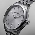 Швейцарские часы Maurice Lacroix 1975 751007-SS002-130-1 созданы для современных людей, ценящих стиль и качество. Эта модель, выпущенная в честь 50-летия бренда, сочетает в себе винтажный шарм и современную актуальность. Часы оснащены швейцарским кварцевым механизмом с высокой точностью хода. Корпус из нержавеющей стали диаметром 39 мм и толщиной 9 мм, с матовой и полированной отделкой, обеспечивает водозащиту до 100 метров. Серебристый циферблат с эффектом "солнечные лучи" украшен серебристыми индексами и стрелками, а также календарем с окошком даты на 6 часах. Сапфировое стеклоСапфировое стеклоПрочный и надёжный материал из кристалла сапфира синтетического происхождения, характеризующийся особой твёрдостью и устойчивостью к царапинам и повреждениям. с антибликовым покрытиемАнтибликовое покрытиеСлой оксида металла в 0,13-0,3 микрон, благодаря которому стекло часов не бликует и не отражает свет. Антибликовое покрытие уменьшает отражение света в 10 раз, обеспечивая отличную читаемость показателей циферблата. защищает циферблат. Часы комплектуются браслетом из нержавеющей стали, браслет из литых звеньев в пять рядов и системой быстрой смены ремешка. Застежка «бабочка»Застёжка "бабочка"Такой вид застёжки дополняется предохранителями, помогающими избежать случайного раскрытия браслета. Обладают изящным исполнением.