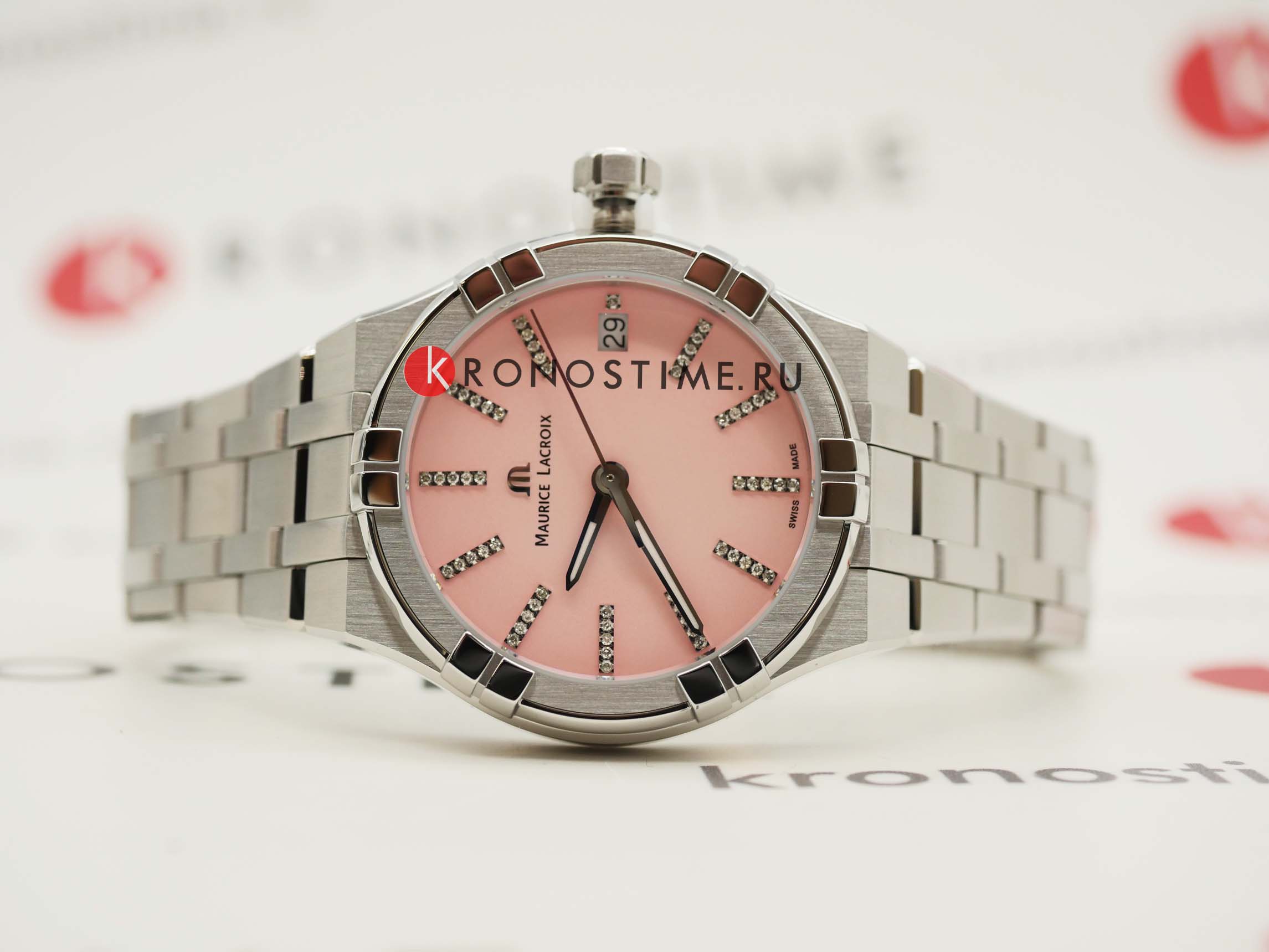 Женские швейцарские механические часы с автоподзаводом Maurice Lacroix Aikon Quartz Colours Edition AI1106-SS002-550-1, механический механизм (автоматический калибр) с высокой точностью. Сапфировое стеклоСапфировое стеклоПрочный и надёжный материал из кристалла сапфира синтетического происхождения, характеризующийся особой твёрдостью и устойчивостью к царапинам и повреждениям. устойчивое к появлению царапин, обладающее высокой прозрачностью. Корпус часов изготовлен из нержавеющей стали. Стрелки с люминесцентным покрытиемЛюминесцентное покрытиеПозволяет считывать показания времени в темноте. Производители наносят на стрелки, часовые индексы, безель или поверхность циферблата светонакопительный состав, дающий холодное свечение.. Водозащита: 100 метров, позволит плавать, нырять и заниматься другими водными видами спорта. Стальной браслет на застёжке-бабочке с кнопкамиЗастёжка "бабочка"Такой вид застёжки дополняется предохранителями, помогающими избежать случайного раскрытия браслета. Обладают изящным исполнением. .