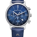 Синий кожаный ремешок с логотипом Maurice Lacroix оснащён системой быстрой замены, обеспечивающей удобство в использовании.