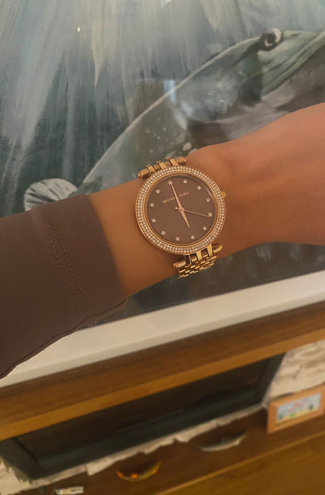 Женские американские часы Michael Kors Darci MK3217, кварцевый механизм с высокой точностью. Минеральное стеклоМинеральное стеклоМинеральное стекло представляет собой искусственно выращенный минерал кварца. Такое стекло отличается особой устойчивостью к повреждениям и царапинам. Уступает по некоторым качествам сапфировому стеклу., устойчивое к мелким механическим повреждениям. Корпус часов выполнен из нержавеющей стали с PVD-покрытиемPVDУльтратонкое покрытие наносится в технике вакуумного напыления, сочетает в себе нитрид титана особой прочности со слоем золота или оксида хрома. Несёт в себе декоративную или защитную функцию.. БезельБезельВнешний ободок, закрепляющий стекло. В спортивных часах так называется поворотное кольцо с делениями на циферблате, выполняет роль таймера – замеряет отрезки времени на шкале. Неподвижный безель – элемент декора. Однонаправленно вращающийся безель на дайверских часах позволяет фиксировать моменты погружения и выныривания на поверхность. и циферблат украшены кристаллами. Класс водозащиты: 50 метров, позволит защитить корпус от случайных брызг или капель дождя. Стальной браслет с PVD-покрытиемPVDУльтратонкое покрытие наносится в технике вакуумного напыления, сочетает в себе нитрид титана особой прочности со слоем золота или оксида хрома. Несёт в себе декоративную или защитную функцию. миланского плетения на раскладном замкеРаскладной замокДанный вариант застежки используется только на часах с металлическим браслетом. Отличительная особенность такого крепления в том, что длина браслета становится универсальной и вы можете самостоятельно отрегулировать нужный вам размер – застежка просто двигается по браслету часов..