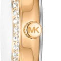 Женские американские часы с минеральным стекломМинеральное стеклоМинеральное стекло представляет собой искусственно выращенный минерал кварца. Такое стекло отличается особой устойчивостью к повреждениям и царапинам. Уступает по некоторым качествам сапфировому стеклу. Michael Kors Harlowe MK4709, кварцевый механизм с высокой точностью. Корпус и браслет часов изготовлены из нержавеющей стали с PVD-покрытиемPVDУльтратонкое покрытие наносится в технике вакуумного напыления, сочетает в себе нитрид титана особой прочности со слоем золота или оксида хрома. Несёт в себе декоративную или защитную функцию.. Циферблат, и безельБезельВнешний ободок, закрепляющий стекло. В спортивных часах так называется поворотное кольцо с делениями на циферблате, выполняет роль таймера – замеряет отрезки времени на шкале. Неподвижный безель – элемент декора. Однонаправленно вращающийся безель на дайверских часах позволяет фиксировать моменты погружения и выныривания на поверхность. украшены кристаллами. Метки в виде штрихов и римских цифр. Заводная головка с защитой. Класс водозащиты: 50 метров, позволит защитить корпус от случайных брызг или капель дождя. Стальной браслет на раскладной застёжкеРаскладная застёжкаТакой тип застёжки используется только на браслетах из металла. Она никогда не раскрывается полностью, происходит разделение на 2 и более частей. Раскладывающая застёжка снизит вероятность потери часов к минимуму..