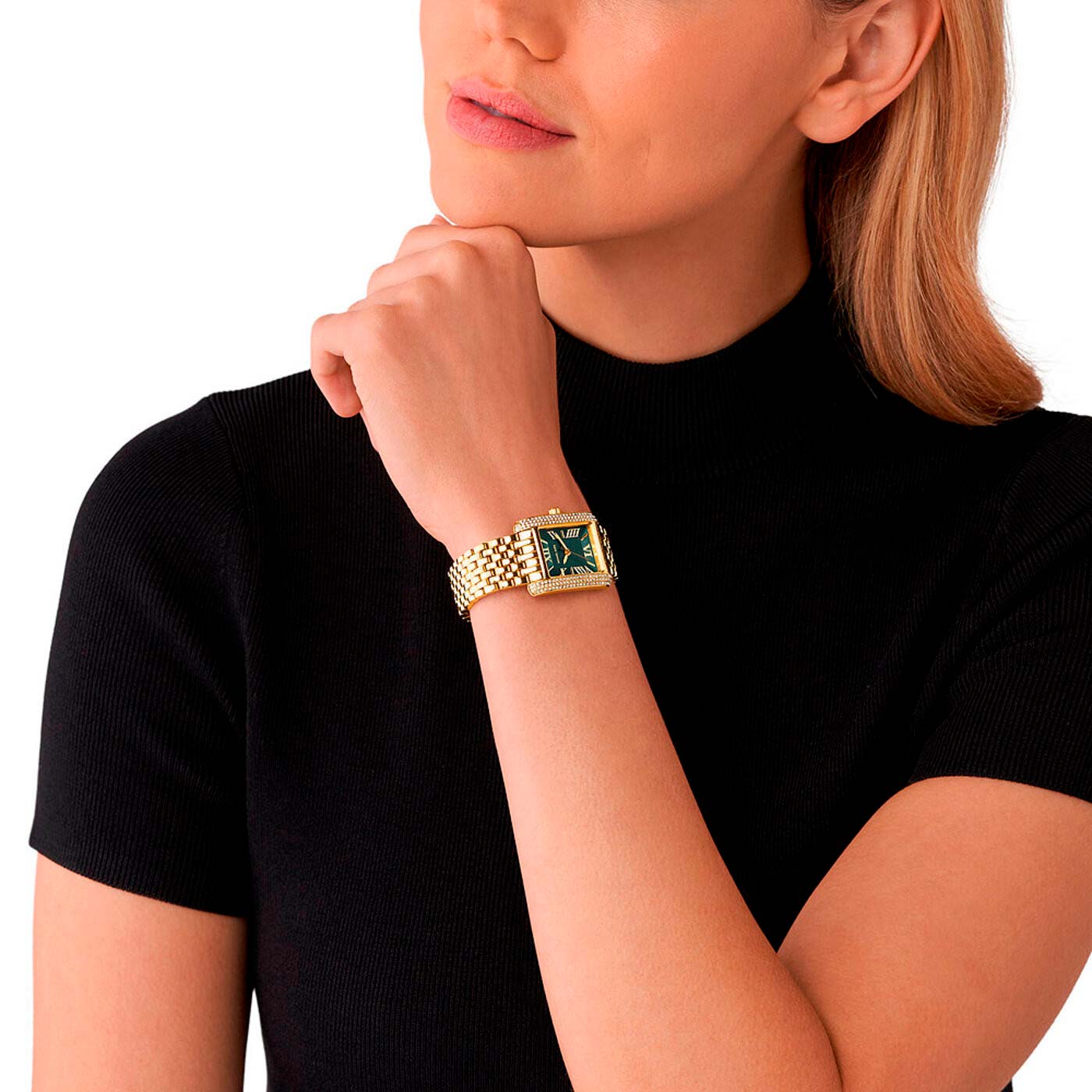 Женские американские наручные часы с минеральным стекломМинеральное стеклоМинеральное стекло представляет собой искусственно выращенный минерал кварца. Такое стекло отличается особой устойчивостью к повреждениям и царапинам. Уступает по некоторым качествам сапфировому стеклу. Michael Kors Emery MK4742, кварцевый механизм с высокой точностью. Минеральное стеклоМинеральное стеклоМинеральное стекло представляет собой искусственно выращенный минерал кварца. Такое стекло отличается особой устойчивостью к повреждениям и царапинам. Уступает по некоторым качествам сапфировому стеклу. устойчивое к появлению царапин, обладающее высокой прозрачностью. Корпус и браслет часов изготовлены из нержавеющей стали с PVD-покрытиемPVDУльтратонкое покрытие наносится в технике вакуумного напыления, сочетает в себе нитрид титана особой прочности со слоем золота или оксида хрома. Несёт в себе декоративную или защитную функцию.. БезельБезельВнешний ободок, закрепляющий стекло. В спортивных часах так называется поворотное кольцо с делениями на циферблате, выполняет роль таймера – замеряет отрезки времени на шкале. Неподвижный безель – элемент декора. Однонаправленно вращающийся безель на дайверских часах позволяет фиксировать моменты погружения и выныривания на поверхность. из нержавеющей стали украшен кристаллами. Класс водозащиты: 50 метров, позволит защитить корпус от случайных брызг или капель дождя. Стальной браслет на раскладной застёжкеРаскладная застёжкаТакой тип застёжки используется только на браслетах из металла. Она никогда не раскрывается полностью, происходит разделение на 2 и более частей. Раскладывающая застёжка снизит вероятность потери часов к минимуму..