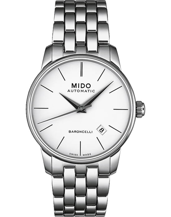 Мужские швейцарские механические часы Mido Baroncelli II Gent M8600.4.76.1, автоматический механизм с высокой точностью. Сапфировое стеклоСапфировое стеклоПрочный и надёжный материал из кристалла сапфира синтетического происхождения, характеризующийся особой твёрдостью и устойчивостью к царапинам и повреждениям. устойчивое к появлению царапин, обладающее высокой прозрачностью. Класс водозащиты: 50 метров, позволит защитить корпус от случайных брызг или капель дождя. Корпус часов изготовлен из нержавеющей стали.