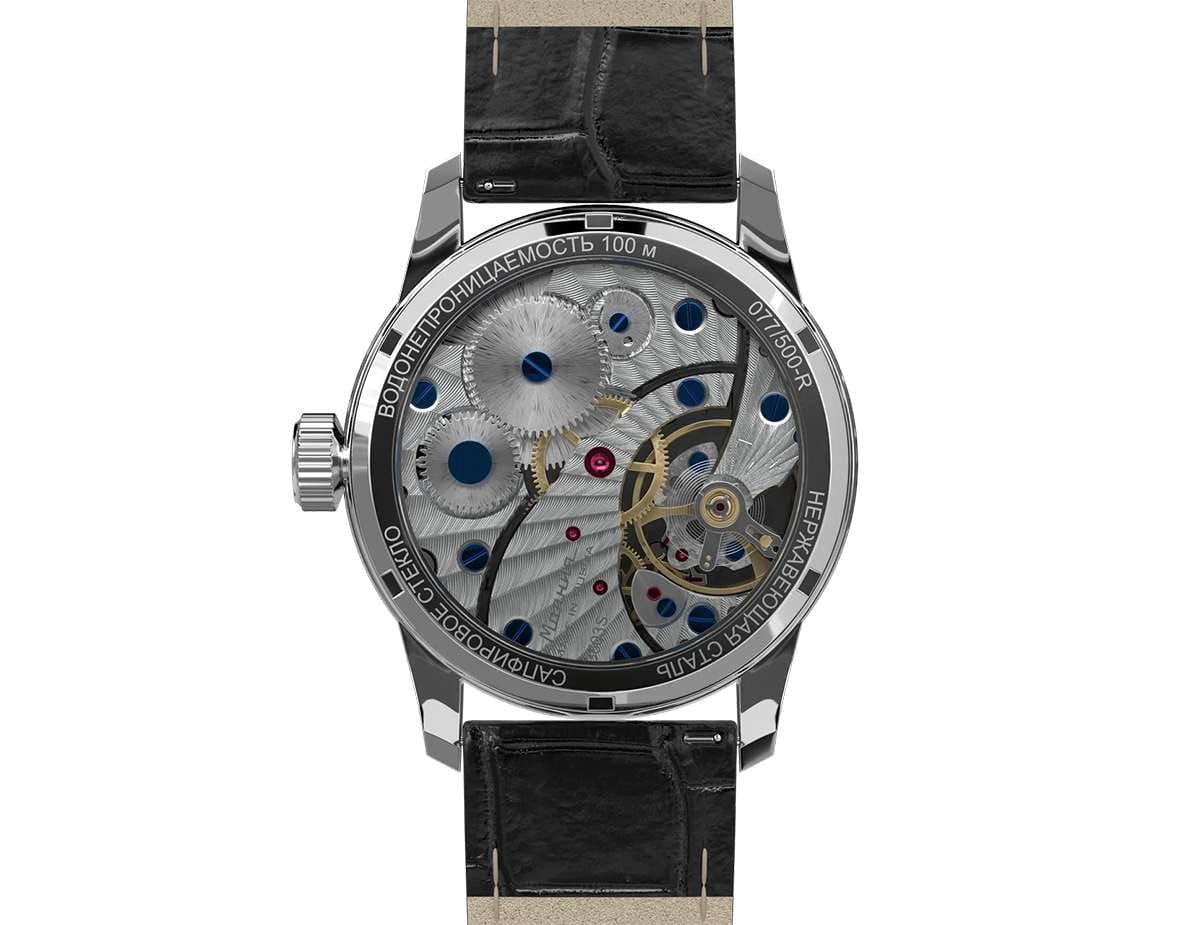 Мужские механические часы с ручным подзаводом — это аксессуар от легендарного бренда «МОЛНИЯ», созданный на Челябинском часовом заводе. Корпус диаметром 42 мм выполнен из нержавеющей стали. Циферблат оформлен индексами и стрелками. Малая секундная стрелка вынесена на отдельный субциферблат. Циферблат защищён сапфировым стекломСапфировое стеклоПрочный и надёжный материал из кристалла сапфира синтетического происхождения, характеризующийся особой твёрдостью и устойчивостью к царапинам и повреждениям.. Механизм — мануфактурный калибр 3603RS, полностью собранный вручную, с декорированными деталями, которые видны через прозрачную заднюю крышку. Часы оснащены кожаным ремешком чёрного цвета с раскладной застёжкойРаскладная застёжкаТакой тип застёжки используется только на браслетах из металла. Она никогда не раскрывается полностью, происходит разделение на 2 и более частей. Раскладывающая застёжка снизит вероятность потери часов к минимуму.. Водонепроницаемость 100 м позволяет использовать часы для плавания и повседневного ношения. Идеальный выбор для тех, кто ценит российское качество и традиции.