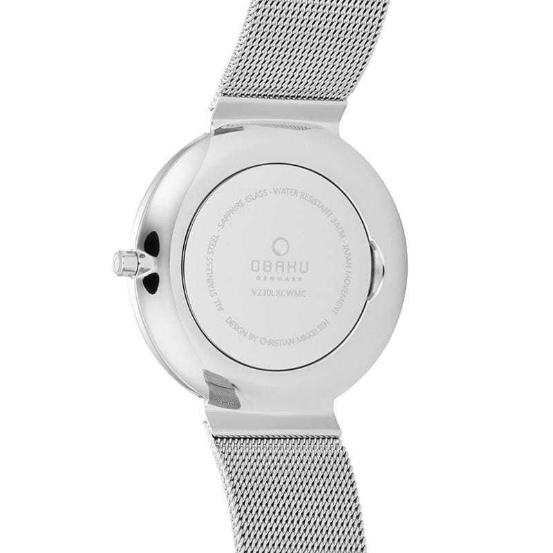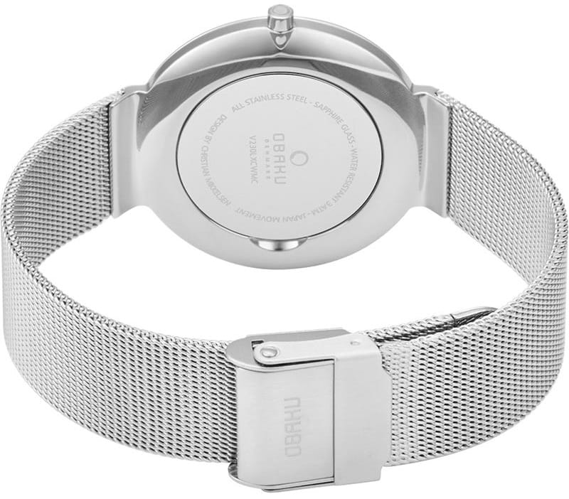 Женские наручные часы на миланском браслете Obaku Ultra Slim V230LXCWMC, кварцевый механизм с высокой точностью. Сапфировое стеклоСапфировое стеклоПрочный и надёжный материал из кристалла сапфира синтетического происхождения, характеризующийся особой твёрдостью и устойчивостью к царапинам и повреждениям. устойчивое к появлению царапин, обладающее высокой прозрачностью. Класс водозащиты: 30 метров, позволит защитить корпус от случайных брызг или капель дождя. Корпус часов изготовлен из стали. Стальной браслет с раскладной застёжкойРаскладная застёжкаТакой тип застёжки используется только на браслетах из металла. Она никогда не раскрывается полностью, происходит разделение на 2 и более частей. Раскладывающая застёжка снизит вероятность потери часов к минимуму..