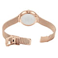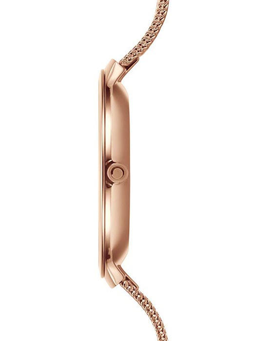 Женские классические часы. Кварцевый механизм. Корпус диаметром 32 мм выполнен из нержавеющей стали. Белый циферблат с метками в виде штрихов. Сапфировое стекло. Браслет миланского плетения из нержавеющей стали 316L с IP покрытиемIP-покрытиеМетод ионного напыления. Демонстрирует повышенную устойчивость к истиранию, окислению и химическим веществам. Под воздействием высокого давления и температуры около 1500°C молекулы металла надёжно соединяются с частицами корпуса часов..