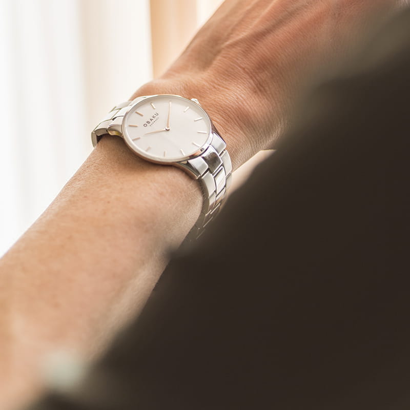 Женские наручные кварцевые часы с минеральным стекломМинеральное стеклоМинеральное стекло представляет собой искусственно выращенный минерал кварца. Такое стекло отличается особой устойчивостью к повреждениям и царапинам. Уступает по некоторым качествам сапфировому стеклу. Obaku Links V247LXCWSC, кварцевый механизм с высокой точностью. Класс водозащиты: 30 метров, позволит защитить корпус от случайных брызг или капель дождя. Корпус часов изготовлен из стали. Стальной браслет с раскладной застёжкойРаскладная застёжкаТакой тип застёжки используется только на браслетах из металла. Она никогда не раскрывается полностью, происходит разделение на 2 и более частей. Раскладывающая застёжка снизит вероятность потери часов к минимуму.. Центральные часовая и минутная стрелки. Белый перламутровый циферблат.