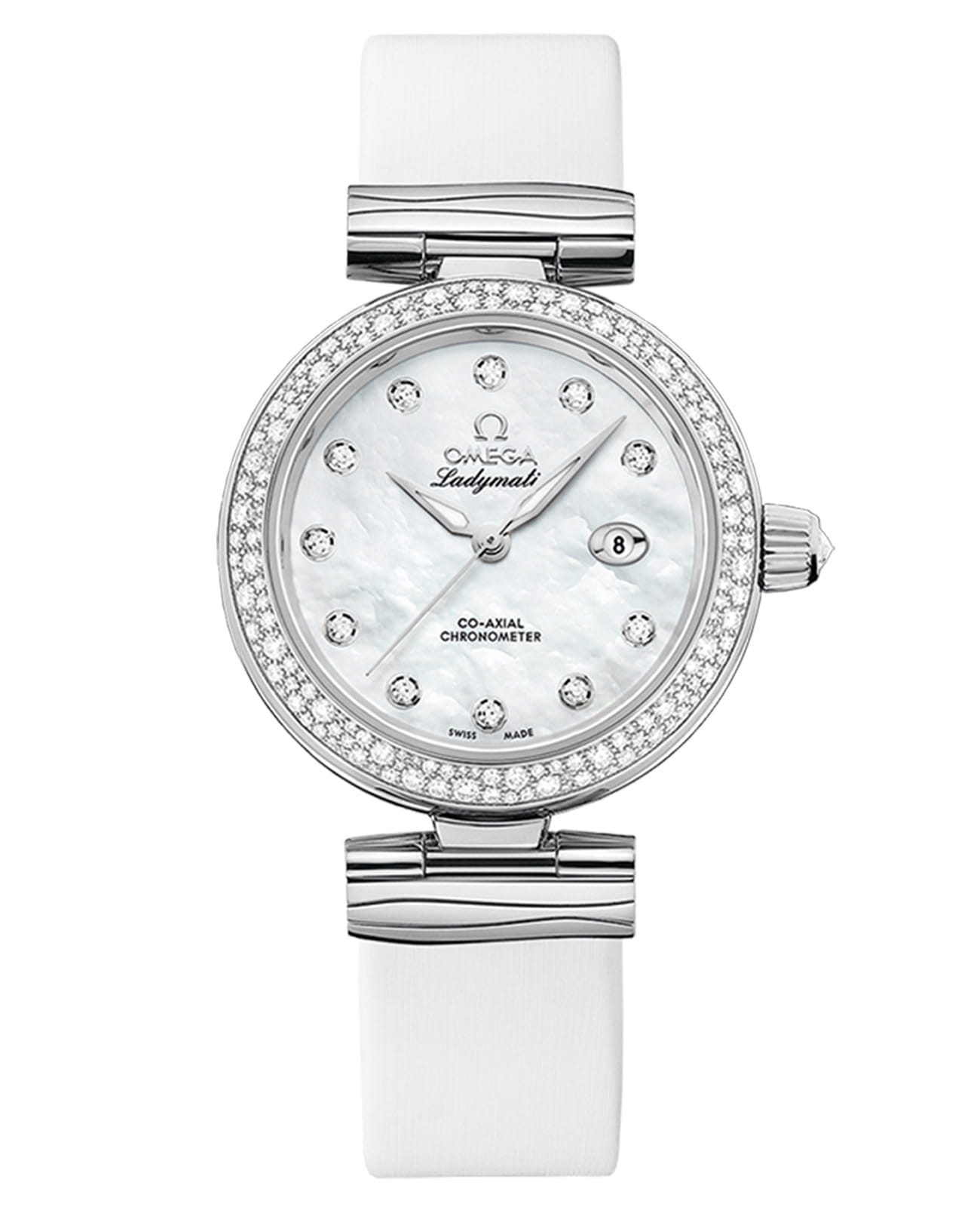 Ladymatic — сияющая легенда женских часов, сохранившая за 65 лет свою непревзойденную элегантность. Корпус из нержавеющей стали с изящными волнистыми звеньями дополнен  белым кожаным ремешком, создавая ощущение воздушной легкости. Стрелки из белого золота18-каратное золотоОбозначение по каратной системе пробирования, оно показывает, сколько драгоценного металла содержится в изделии. 18 карат - в составе 75% чистого золота, соответствует 750 пробе.