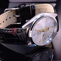 Дополнением для строгого стального корпуса стал текстурированный чёрный ремешок из натуральной кожи. Японский механизм с автоматической системой завода получает энергию от движений руки владельца. Минеральное стекло обеспечивает защиту от царапин. Индикация даты и дня недели облегчит выполнение повседневных дел. Наручные часы оснащены люминесцентной подсветкойЛюминесцентное покрытиеПозволяет считывать показания времени в темноте. Производители наносят на стрелки, часовые индексы, безель или поверхность циферблата светонакопительный состав, дающий холодное свечение..