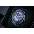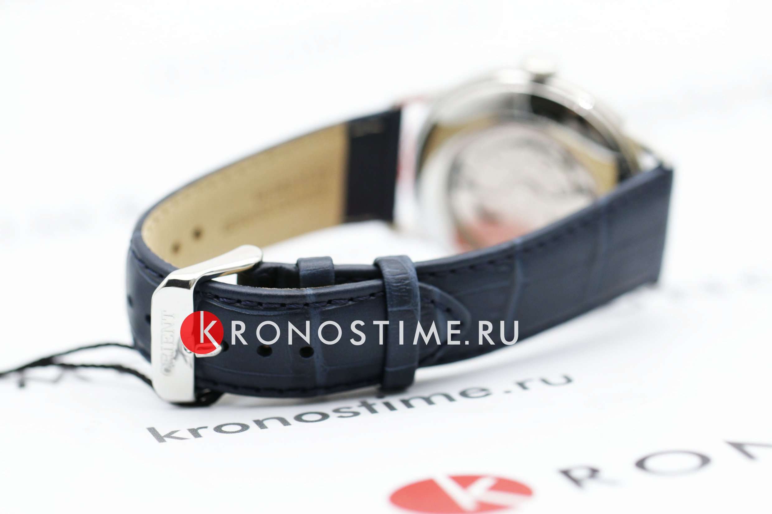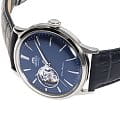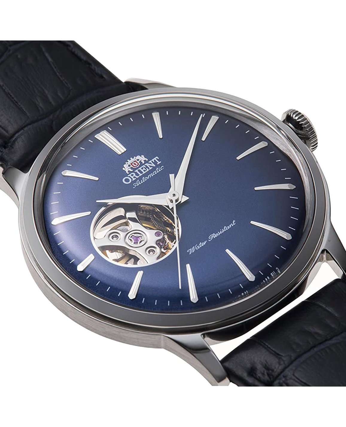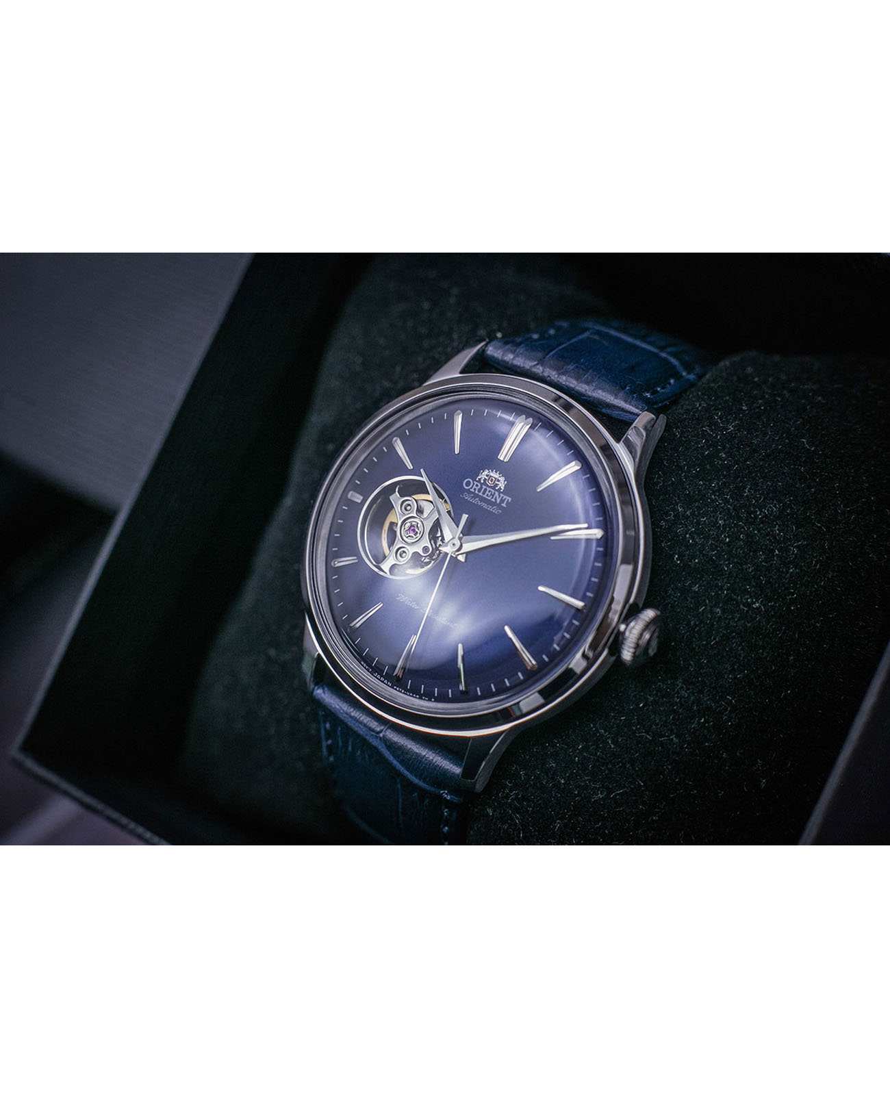Orient RA-AG0005L — элегантные механические часы с изысканным дизайном и надёжной японской механикой. Корпус диаметром 40,5 мм выполнен из нержавеющей стали, что придаёт модели прочность и долговечность. Синий циферблат украшен открытым балансом (Open Heart), позволяющим наблюдать за работой механизма. Позолоченные стрелки и часовые метки придают часам утончённый стиль. Защиту циферблата обеспечивает минеральное стеклоМинеральное стеклоМинеральное стекло представляет собой искусственно выращенный минерал кварца. Такое стекло отличается особой устойчивостью к повреждениям и царапинам. Уступает по некоторым качествам сапфировому стеклу., устойчивое к царапинам. Внутри установлен автоматический механизм Orient калибра F6T22 с 22 камнями, функцией стоп-секунды и возможностью ручного завода. Запас хода составляет более 40 часов. Часы укомплектованы синим кожаным ремешком с текстурой под аллигатора, а классическая застёжка-пряжка гарантирует удобную фиксацию на запястье. Водонепроницаемость 30 метров защищает модель от случайных брызг и дождя, делая её отличным выбором для повседневного ношения.