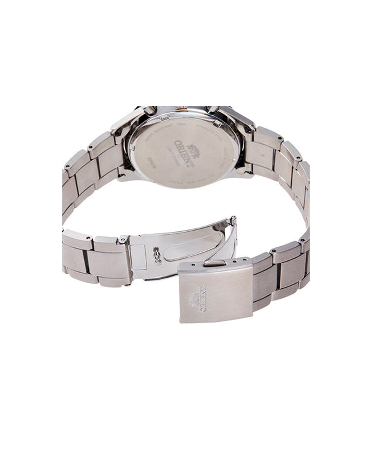 Часы Orient RA-TY0003L представляют собой модель из коллекции Chronograph, сочетающую в себе современный дизайн и функциональность. Это мужские кварцевые часы с солнечной подзарядкой, оснащённые калибром KSA00. Точность хода составляет ±15 секунд в месяц, а запас хода при полной зарядке достигает 6 месяцев, что делает их удобными для повседневного использования. Корпус часов выполнен из нержавеющей стали и имеет диаметр 42,9 мм при толщине 11,5 мм. Водонепроницаемость модели составляет 100 метров (10 бар), что позволяет использовать их для плавания, но не для глубоководного дайвинга. Часы оснащены минеральным стекломМинеральное стеклоМинеральное стекло представляет собой искусственно выращенный минерал кварца. Такое стекло отличается особой устойчивостью к повреждениям и царапинам. Уступает по некоторым качествам сапфировому стеклу., устойчивым к царапинам, и винтовой задней крышкой, обеспечивающей герметичность. Циферблат выполнен в синем цвете с аналоговым дисплеем. На циферблате расположены: 24-часовой индикатор, 60-минутный счётчик и малая секундная стрелка. Также предусмотрено окно даты, что добавляет часам функциональности. Браслет часов изготовлен из нержавеющей стали и имеет ширину 20 мм. Застёжка выполнена на раскладной застёжкеРаскладная застёжкаТакой тип застёжки используется только на браслетах из металла. Она никогда не раскрывается полностью, происходит разделение на 2 и более частей. Раскладывающая застёжка снизит вероятность потери часов к минимуму..
