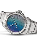 В циферблате часов использована современная технология, вдохновленная биомимикрией, отражающая чудеса природы, как переливающиеся крылья жука. Разработанная совместно с ETH Zürich, эта технология впервые использована в часах, что позволяет наслаждаться запястьем. Модель ProPilot X Calibre 400 Laser в 39-миллиметровом титановом корпусе и на браслете украшена разноцветным циферблатом, созданным с помощью новой лазерной техники. Синий, зеленый и фиолетовый цвета достигаются за счет отраженного света, а не пигмента. Технологическая красота.