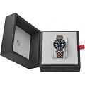 Многокомпонентный корпус из нержавеющей стали, вращающийся безельБезельВнешний ободок, закрепляющий стекло. В спортивных часах так называется поворотное кольцо с делениями на циферблате, выполняет роль таймера – замеряет отрезки времени на шкале. Неподвижный безель – элемент декора. Однонаправленно вращающийся безель на дайверских часах позволяет фиксировать моменты погружения и выныривания на поверхность. с минутной шкалой. Сапфировое стеклоСапфировое стеклоПрочный и надёжный материал из кристалла сапфира синтетического происхождения, характеризующийся особой твёрдостью и устойчивостью к царапинам и повреждениям., выпуклое с обеих сторон, внутреннее антибликовое покрытие. Прозрачная задняя крышка из сапфирового стеклаСапфировое стеклоПрочный и надёжный материал из кристалла сапфира синтетического происхождения, характеризующийся особой твёрдостью и устойчивостью к царапинам и повреждениям.. Стрелки и метки с люминесцентным покрытиемЛюминесцентное покрытиеПозволяет считывать показания времени в темноте. Производители наносят на стрелки, часовые индексы, безель или поверхность циферблата светонакопительный состав, дающий холодное свечение.. Завинчивающаяся заводная головка.