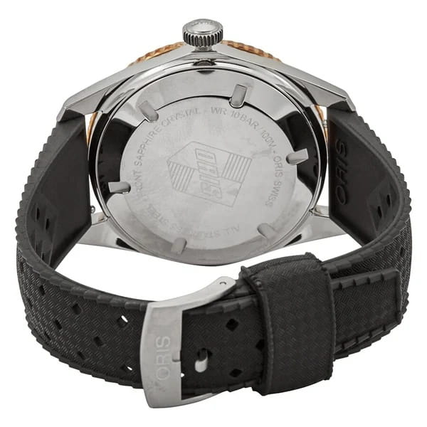 Oris 01 733 7720 4354-07 4 21 18 Divers Sixty-Five – это часы, сочетающие в себе классический дизайн и современную функциональность. Корпус из нержавеющей стали диаметром 42 мм идеально подходит для тех, кто ценит утонченность и стиль. Сапфировое стеклоСапфировое стеклоПрочный и надёжный материал из кристалла сапфира синтетического происхождения, характеризующийся особой твёрдостью и устойчивостью к царапинам и повреждениям. с антибликовым покрытием защищает циферблат от царапин и обеспечивает отличную читаемость при любом освещении. Каучуковый браслет на стандартной застёжке идеально дополняет дизайн часов, обеспечивая комфортное ношение. Стрелки и метки с люминесцентным покрытиемЛюминесцентное покрытиеПозволяет считывать показания времени в темноте. Производители наносят на стрелки, часовые индексы, безель или поверхность циферблата светонакопительный состав, дающий холодное свечение. позволят следить за временем даже в полной темноте. Вращающийся безельБезельВнешний ободок, закрепляющий стекло. В спортивных часах так называется поворотное кольцо с делениями на циферблате, выполняет роль таймера – замеряет отрезки времени на шкале. Неподвижный безель – элемент декора. Однонаправленно вращающийся безель на дайверских часах позволяет фиксировать моменты погружения и выныривания на поверхность. с бронзовым поворотным кольцом. Часы оснащены центральной секундной стрелкой и окошком даты в положении «6 часов», что делает их функциональными для повседневного использования. Автоматический механизм на базе калибра 733 с 38-часовым запасом хода. Часы обладают водонепроницаемостью в 10 бар (100 метров). Механизм с автоподзаводом, скрытый внутри, является сердцем этих часов, гарантируя безупречную работу на протяжении многих лет.