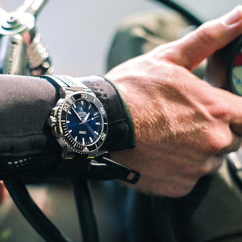 Многокомпонентный корпус из нержавеющей стали, керамический безельБезельВнешний ободок, закрепляющий стекло. В спортивных часах так называется поворотное кольцо с делениями на циферблате, выполняет роль таймера – замеряет отрезки времени на шкале. Неподвижный безель – элемент декора. Однонаправленно вращающийся безель на дайверских часах позволяет фиксировать моменты погружения и выныривания на поверхность. с минутной шкалой. Сапфировое стеклоСапфировое стеклоПрочный и надёжный материал из кристалла сапфира синтетического происхождения, характеризующийся особой твёрдостью и устойчивостью к царапинам и повреждениям., выпуклое с обеих сторон, внутреннее антибликовое покрытие. Прозрачная задняя крышка из сапфирового стеклаСапфировое стеклоПрочный и надёжный материал из кристалла сапфира синтетического происхождения, характеризующийся особой твёрдостью и устойчивостью к царапинам и повреждениям.. Стрелки и метки с люминесцентным покрытиемЛюминесцентное покрытиеПозволяет считывать показания времени в темноте. Производители наносят на стрелки, часовые индексы, безель или поверхность циферблата светонакопительный состав, дающий холодное свечение.. Завинчивающаяся заводная головка. Водонепроницаемость 300 метров, позволит плавать, нырять и заниматься другими водными видами спорта. Запас хода 38 часов. Каучуковый ремень.