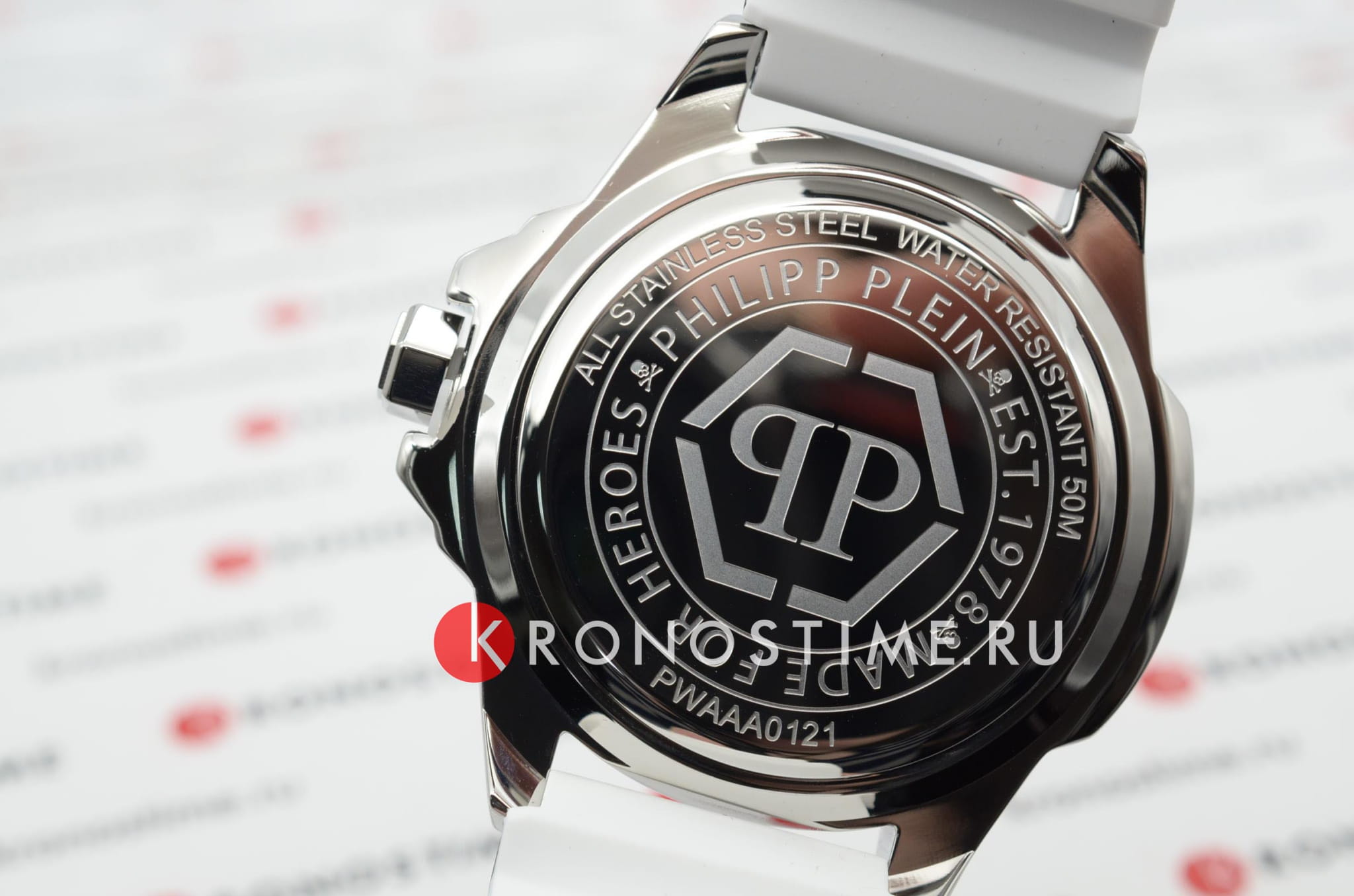 Яркие мужские часы с минеральным стекломМинеральное стеклоМинеральное стекло представляет собой искусственно выращенный минерал кварца. Такое стекло отличается особой устойчивостью к повреждениям и царапинам. Уступает по некоторым качествам сапфировому стеклу. Philipp Plein The Skull PWAAA0121, кварцевый механизм с высокой точностью. Класс водозащиты: 50 метров, позволит защитить корпус от случайных брызг или капель дождя. Корпус часов изготовлен из стали.