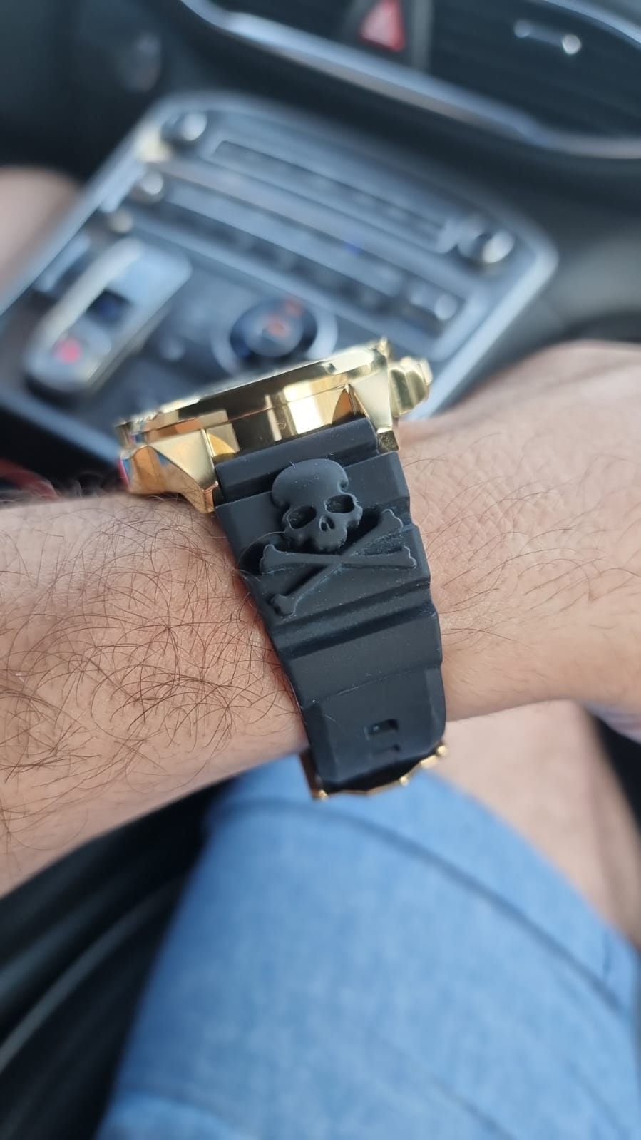 Яркие мужские часы с минеральным стекломМинеральное стеклоМинеральное стекло представляет собой искусственно выращенный минерал кварца. Такое стекло отличается особой устойчивостью к повреждениям и царапинам. Уступает по некоторым качествам сапфировому стеклу. Philipp Plein The Skull PWAAA0221, кварцевый механизм с высокой точностью. Класс водозащиты: 50 метров, позволит защитить корпус от случайных брызг или капель дождя. Корпус часов изготовлен из стали с IP-покрытиемIP-покрытиеМетод ионного напыления. Демонстрирует повышенную устойчивость к истиранию, окислению и химическим веществам. Под воздействием высокого давления и температуры около 1500°C молекулы металла надёжно соединяются с частицами корпуса часов.