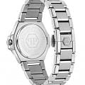 Женские кварцевые часы Philipp Plein Plein Royal Prestige PW4FA0425 — это стильное сочетание элегантности и современного дизайна. Изящный корпус выполнен из нержавеющей стали серебристого цвета, диаметром 33 мм, что придаст образу женственности и романтизма. Изысканный циферблат с метками в виде штрихов придает модели особый блеск. Циферблат защищен минеральным стекломМинеральное стеклоМинеральное стекло представляет собой искусственно выращенный минерал кварца. Такое стекло отличается особой устойчивостью к повреждениям и царапинам. Уступает по некоторым качествам сапфировому стеклу., обеспечивающий устойчивость к царапинам. БезельБезельВнешний ободок, закрепляющий стекло. В спортивных часах так называется поворотное кольцо с делениями на циферблате, выполняет роль таймера – замеряет отрезки времени на шкале. Неподвижный безель – элемент декора. Однонаправленно вращающийся безель на дайверских часах позволяет фиксировать моменты погружения и выныривания на поверхность. украшен винтами, циферблат украшен кристаллами. Стрелки с люминесцентным покрытиемЛюминесцентное покрытиеПозволяет считывать показания времени в темноте. Производители наносят на стрелки, часовые индексы, безель или поверхность циферблата светонакопительный состав, дающий холодное свечение.. Часы оснащены надежным кварцевым механизмом. Стальной браслет на застёжке-бабочке с кнопкамиЗастёжка "бабочка"Такой вид застёжки дополняется предохранителями, помогающими избежать случайного раскрытия браслета. Обладают изящным исполнением. , гарантирует комфортное и безопасное ношение. Класс водозащиты: 50 метров позволит защитить корпус от случайных брызг или капель дождя. Phlipp Plein — отличный выбор для тех, кто ценит яркость и качество.