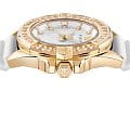 Philipp Plein Plein Majesty PWOFA0125 - дерзкое заявление любви к роскоши и бунтарскому стилю. Диаметр круглого корпуса из прочной нержавеющей стали с PVD-покрытиемPVDУльтратонкое покрытие наносится в технике вакуумного напыления, сочетает в себе нитрид титана особой прочности со слоем золота или оксида хрома. Несёт в себе декоративную или защитную функцию. равен 38 мм. Силиконовый ремешок на стандартной застёжке обеспечивает надёжную фиксацию и комфортное ношение. Метки в виде кристаллов Preciosa. Минеральное стеклоМинеральное стеклоМинеральное стекло представляет собой искусственно выращенный минерал кварца. Такое стекло отличается особой устойчивостью к повреждениям и царапинам. Уступает по некоторым качествам сапфировому стеклу. защищает циферблат от царапин. Люминесцентное покрытиеЛюминесцентное покрытиеПозволяет считывать показания времени в темноте. Производители наносят на стрелки, часовые индексы, безель или поверхность циферблата светонакопительный состав, дающий холодное свечение. стрелок и меток позволит следить за временем даже в полной темноте. Влагозащита: 50 метров, позволит защитить корпус от случайных брызг или капель дождя. Идеальный аксессуар для тех, кто ценит индивидуальность и не боится выделяться из толпы.