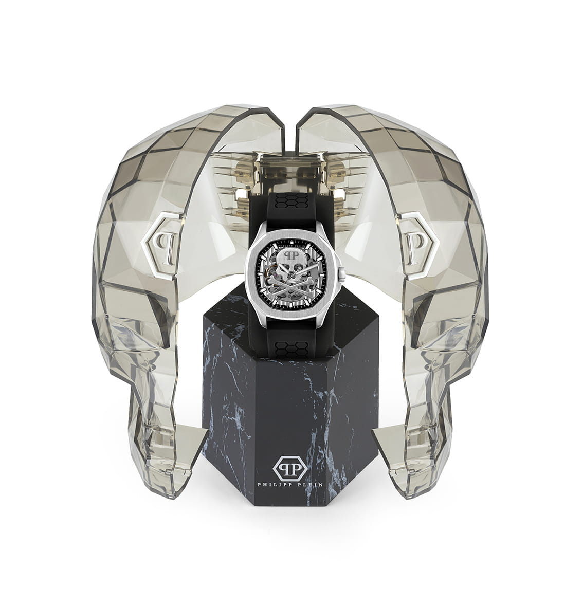 Яркие мужские часы с минеральным стекломМинеральное стеклоМинеральное стекло представляет собой искусственно выращенный минерал кварца. Такое стекло отличается особой устойчивостью к повреждениям и царапинам. Уступает по некоторым качествам сапфировому стеклу. Philipp Plein PWRAA0123, механический механизм.  Класс водозащиты: 50 метров, позволит защитить корпус от случайных брызг или капель дождя. Корпус часов изготовлен из стали. Стрелки и метки с люминесцентным покрытиемЛюминесцентное покрытиеПозволяет считывать показания времени в темноте. Производители наносят на стрелки, часовые индексы, безель или поверхность циферблата светонакопительный состав, дающий холодное свечение.. Скелетонизированные. Часы с механизмом, из которого удалён весь «лишний» металл, с прозрачными циферблатом и задней крышкой,