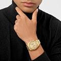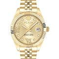 Женские кварцевые часы Philipp Plein Date Superlative PWYFA0425 — это стильное сочетание элегантности и современного дизайна. Изящный корпус выполнен из нержавеющей стали с PVD-покрытиемPVDУльтратонкое покрытие наносится в технике вакуумного напыления, сочетает в себе нитрид титана особой прочности со слоем золота или оксида хрома. Несёт в себе декоративную или защитную функцию., диаметром 34 мм, что придаст образу женственности и романтизма. Изысканный циферблат с метками в виде точек придает модели особый блеск. Циферблат защищен минеральным стекломМинеральное стеклоМинеральное стекло представляет собой искусственно выращенный минерал кварца. Такое стекло отличается особой устойчивостью к повреждениям и царапинам. Уступает по некоторым качествам сапфировому стеклу., обеспечивающий устойчивость к царапинам и украшен кристаллами. Стрелки с люминесцентным покрытиемЛюминесцентное покрытиеПозволяет считывать показания времени в темноте. Производители наносят на стрелки, часовые индексы, безель или поверхность циферблата светонакопительный состав, дающий холодное свечение.. Часы оснащены надежным кварцевым механизмом. Окошко даты находится в положении 3 часа. Стальной браслет с PVD-покрытиемPVDУльтратонкое покрытие наносится в технике вакуумного напыления, сочетает в себе нитрид титана особой прочности со слоем золота или оксида хрома. Несёт в себе декоративную или защитную функцию. на застёжке-бабочкеЗастёжка "бабочка"Такой вид застёжки дополняется предохранителями, помогающими избежать случайного раскрытия браслета. Обладают изящным исполнением. , гарантирует комфортное и безопасное ношение. Класс водозащиты: 50 метров позволит защитить корпус от случайных брызг или капель дождя. Phlipp Plein — отличный выбор для тех, кто ценит яркость и качество.