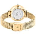 Женские кварцевые часы Pierre Lannier Eolia 041K548. Минеральное стеклоМинеральное стеклоМинеральное стекло представляет собой искусственно выращенный минерал кварца. Такое стекло отличается особой устойчивостью к повреждениям и царапинам. Уступает по некоторым качествам сапфировому стеклу. устойчивое к мелким механическим повреждениям. Центральные часовая и минутная стрелки. Золотистый циферблат украшен кристаллами. Круглый корпус выполнен из нержавеющей стали с IP-покрытиемIP-покрытиеМетод ионного напыления. Демонстрирует повышенную устойчивость к истиранию, окислению и химическим веществам. Под воздействием высокого давления и температуры около 1500°C молекулы металла надёжно соединяются с частицами корпуса часов. цвета желтого золота. Диаметр корпуса 33 мм. Стальной браслет с покрытием выполнен в технике миланского плетения, раскладная застёжкаРаскладная застёжкаТакой тип застёжки используется только на браслетах из металла. Она никогда не раскрывается полностью, происходит разделение на 2 и более частей. Раскладывающая застёжка снизит вероятность потери часов к минимуму.. Водозащита WR 50.
