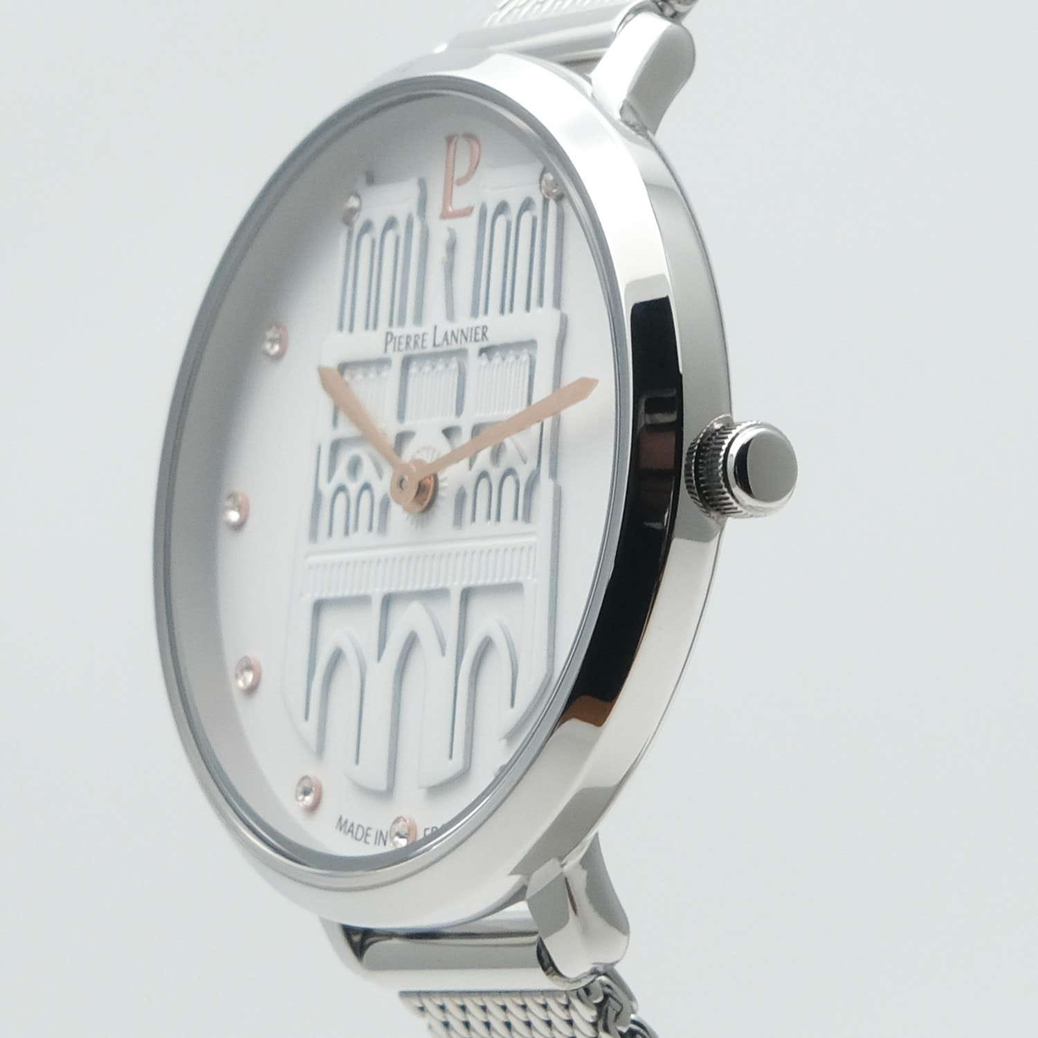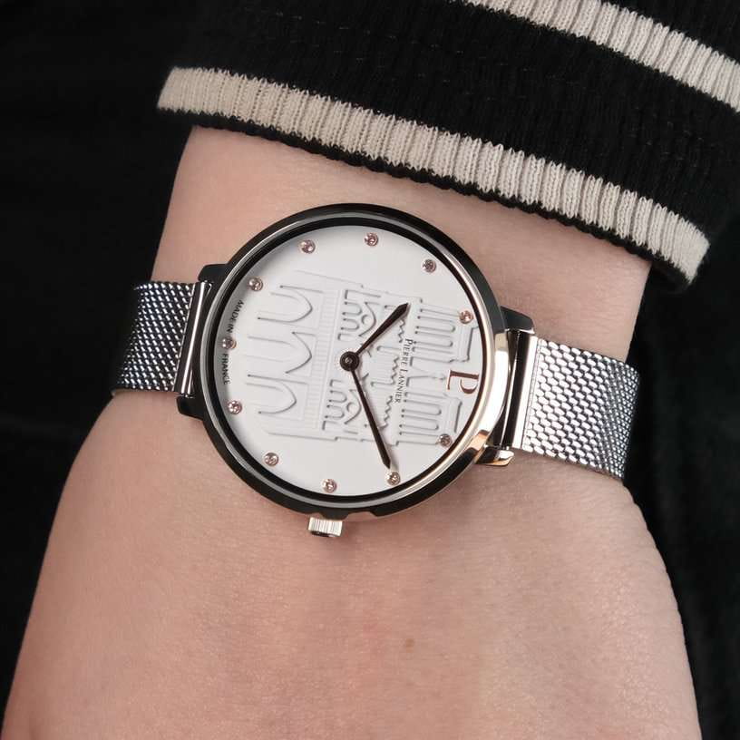 Pierre Lannier Coeur Battant 095N601 — утончённая женская модель, объединяющая элегантную визуальную лёгкость и выразительный технический штрих. Корпус диаметром 33 мм выполнен из нержавеющей стали с полированным блеском, подчёркивающим изящность формы.