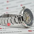 Женские механические часы Pierre Lannier 141K671 — это стильный аксессуар, сочетающий элегантность французского дизайна с надёжностью и функциональностью. Модель оснащена механизмом с автоподзаводом, обеспечивающим запас хода до 42 часов и минимальное обслуживание. Корпус круглой формы выполнен из нержавеющей стали, а его размеры — 35 мм в диаметре и 12,1 мм в толщину, что делает модель удобной для повседневного ношения. Циферблат скелетонизированный, дополнен золотистыми стрелками и метками, что придаёт ему изысканность и выразительность. Защиту механизма обеспечивает минеральное стеклоМинеральное стеклоМинеральное стекло представляет собой искусственно выращенный минерал кварца. Такое стекло отличается особой устойчивостью к повреждениям и царапинам. Уступает по некоторым качествам сапфировому стеклу., устойчивое к мелким повреждениям. Стальной браслет шириной 14 мм оснащён Раскладная застёжкаРаскладная застёжкаТакой тип застёжки используется только на браслетах из металла. Она никогда не раскрывается полностью, происходит разделение на 2 и более частей. Раскладывающая застёжка снизит вероятность потери часов к минимуму., что гарантирует комфорт и надёжную фиксацию на запястье. Часы водонепроницаемы до 50 метров (, что позволяет использовать их в повседневных условиях — при мытье рук или под лёгким дождём. Гарантия 2 года подтверждает качество и долговечность изделия. Эти часы станут универсальным аксессуаром для тех, кто ценит сочетание стиля, качества и французского мастерства — идеальный выбор для повседневной носки и торжественных случаев.