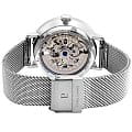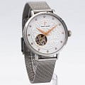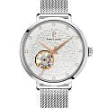 Женские механические часы с автоподзаводом Pierre Lannier Eolia 311D601. Минеральное стеклоМинеральное стеклоМинеральное стекло представляет собой искусственно выращенный минерал кварца. Такое стекло отличается особой устойчивостью к повреждениям и царапинам. Уступает по некоторым качествам сапфировому стеклу. устойчивое к мелким механическим повреждениям. Центральные часовая, минутная и секундная стрелки. Белый циферблат с открытым балансом хода украшен кристаллами. Корпус и браслет выполнен из нержавеющей стали.  Водостойкость: 30 метров, позволит защитить корпус от случайных брызг или капель дождя. Прозрачная задняя крышка. Браслет миланского плетения с раскладной застёжкойРаскладная застёжкаТакой тип застёжки используется только на браслетах из металла. Она никогда не раскрывается полностью, происходит разделение на 2 и более частей. Раскладывающая застёжка снизит вероятность потери часов к минимуму..