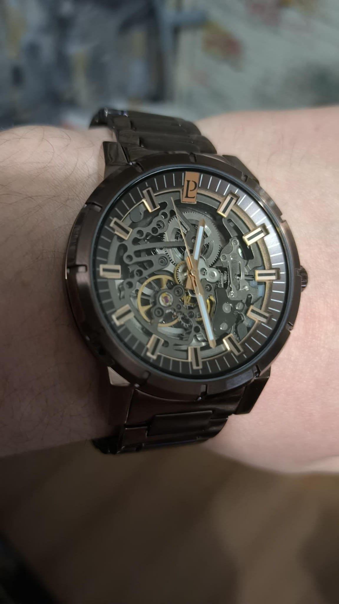 Мужские механические часы с автоподзаводом Pierre Lannier Automatic 325C479. Минеральное стеклоМинеральное стеклоМинеральное стекло представляет собой искусственно выращенный минерал кварца. Такое стекло отличается особой устойчивостью к повреждениям и царапинам. Уступает по некоторым качествам сапфировому стеклу. устойчивое к мелким механическим повреждениям. Центральные часовая, минутная и секундная стрелки. Корпус и браслет выполнены из нержавеющей стали с IP-покрытиемIP-покрытиеМетод ионного напыления. Демонстрирует повышенную устойчивость к истиранию, окислению и химическим веществам. Под воздействием высокого давления и температуры около 1500°C молекулы металла надёжно соединяются с частицами корпуса часов.. Водостойкость: 50 метров, позволит защитить корпус от случайных брызг или капель дождя. Стрелки с люминесцентным покрытиемЛюминесцентное покрытиеПозволяет считывать показания времени в темноте. Производители наносят на стрелки, часовые индексы, безель или поверхность циферблата светонакопительный состав, дающий холодное свечение.. Черный скелетонизированный циферблат. Браслет на раскладной застёжкеРаскладная застёжкаТакой тип застёжки используется только на браслетах из металла. Она никогда не раскрывается полностью, происходит разделение на 2 и более частей. Раскладывающая застёжка снизит вероятность потери часов к минимуму.. Прозрачная задняя крышка.
