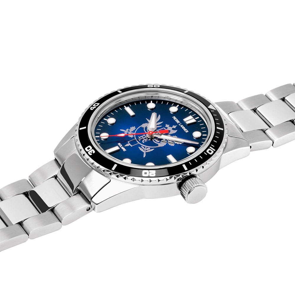 Мужские кварцевые часы Pierre Lannier 461G161 — французский стиль, сочетающий современные технологии и классический дизайн. Круглый корпус диаметром 43 мм из нержавеющей стали, синий циферблат с центральными часовой, минутной и секундной стрелками. БезельБезельВнешний ободок, закрепляющий стекло. В спортивных часах так называется поворотное кольцо с делениями на циферблате, выполняет роль таймера – замеряет отрезки времени на шкале. Неподвижный безель – элемент декора. Однонаправленно вращающийся безель на дайверских часах позволяет фиксировать моменты погружения и выныривания на поверхность. из нержавеющей стали с PVD-покрытиемPVDУльтратонкое покрытие наносится в технике вакуумного напыления, сочетает в себе нитрид титана особой прочности со слоем золота или оксида хрома. Несёт в себе декоративную или защитную функцию.. Стекло — минеральноеМинеральное стеклоМинеральное стекло представляет собой искусственно выращенный минерал кварца. Такое стекло отличается особой устойчивостью к повреждениям и царапинам. Уступает по некоторым качествам сапфировому стеклу., устойчивое к царапинам. Часы оснащены солнечной батареей, обеспечивающей длительную и экологичную работу. Водонепроницаемость 100 м — подходит для плавания без погружения. Браслет из нержавеющей стали с раскладной застёжкойРаскладная застёжкаТакой тип застёжки используется только на браслетах из металла. Она никогда не раскрывается полностью, происходит разделение на 2 и более частей. Раскладывающая застёжка снизит вероятность потери часов к минимуму.. Идеальный выбор для тех, кто ценит французский дизайн, инновации и повседневную функциональность.